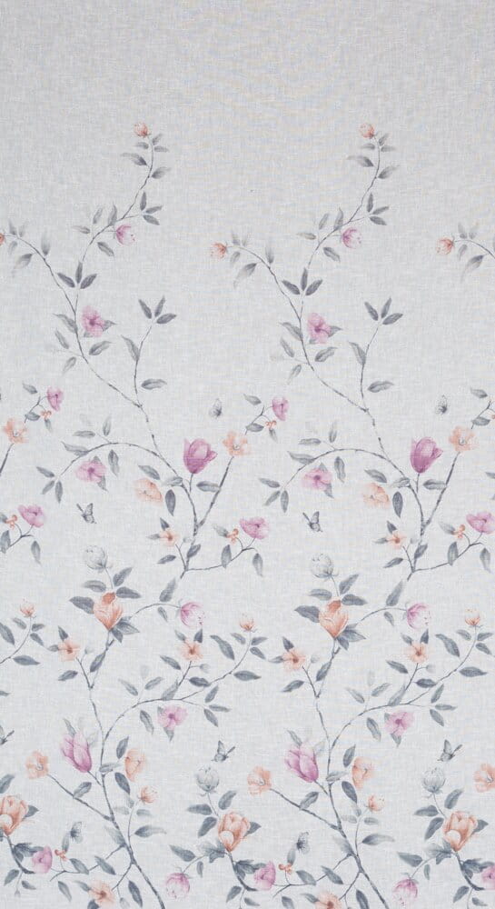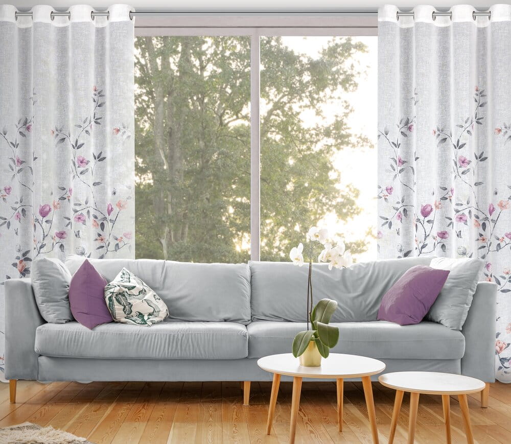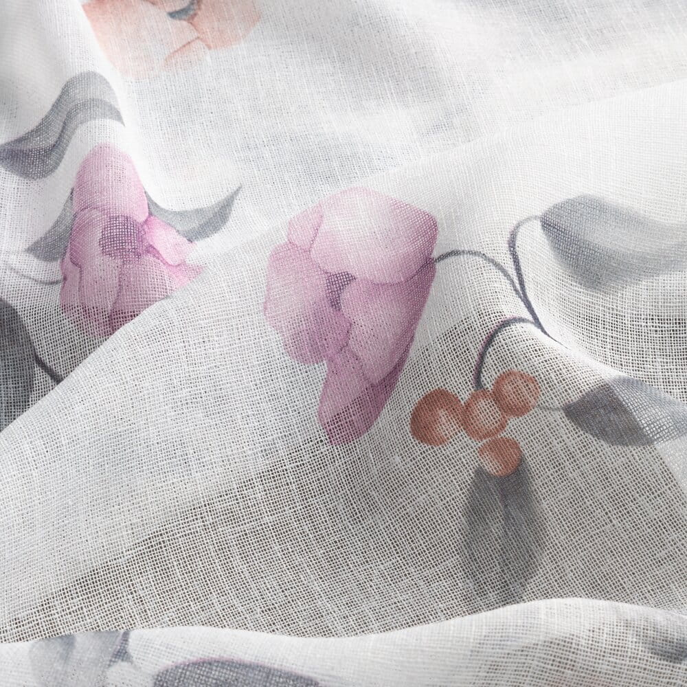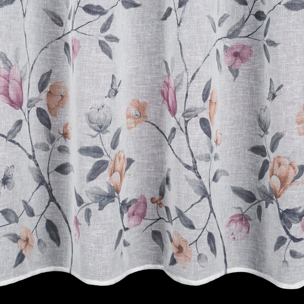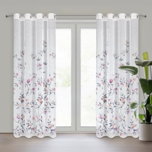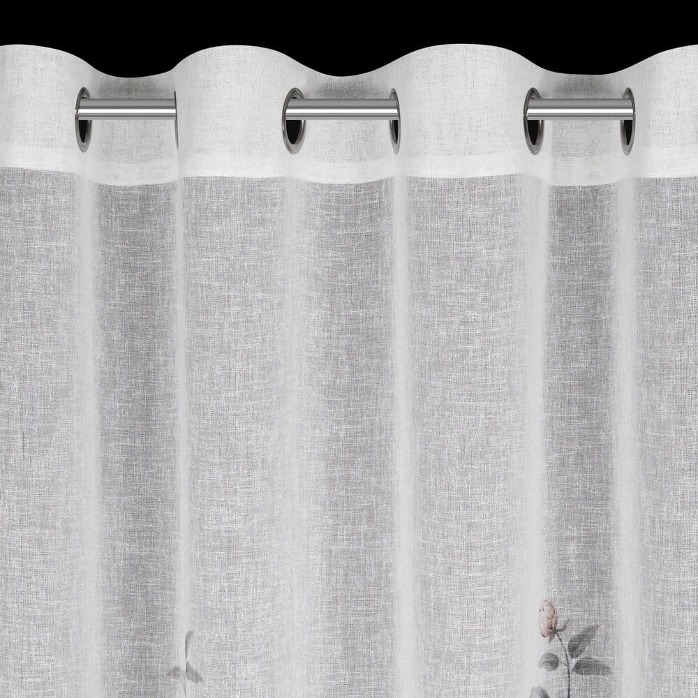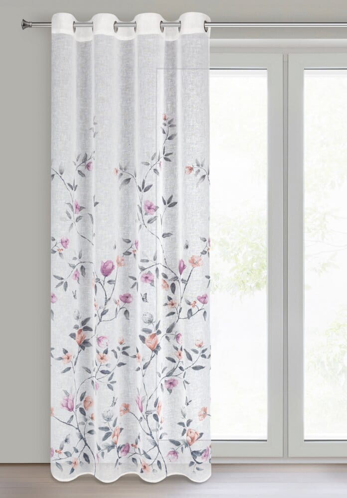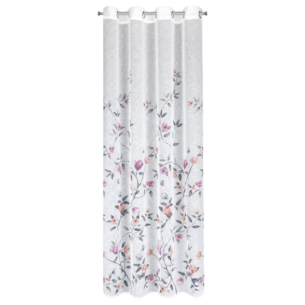 Zasłona gotowa z kwiatowym nadrukiem szerokość: 140 cm, długość: 250 cm, kolor: biały, Gramatura: 140 GSM, Skład: 100% poliester