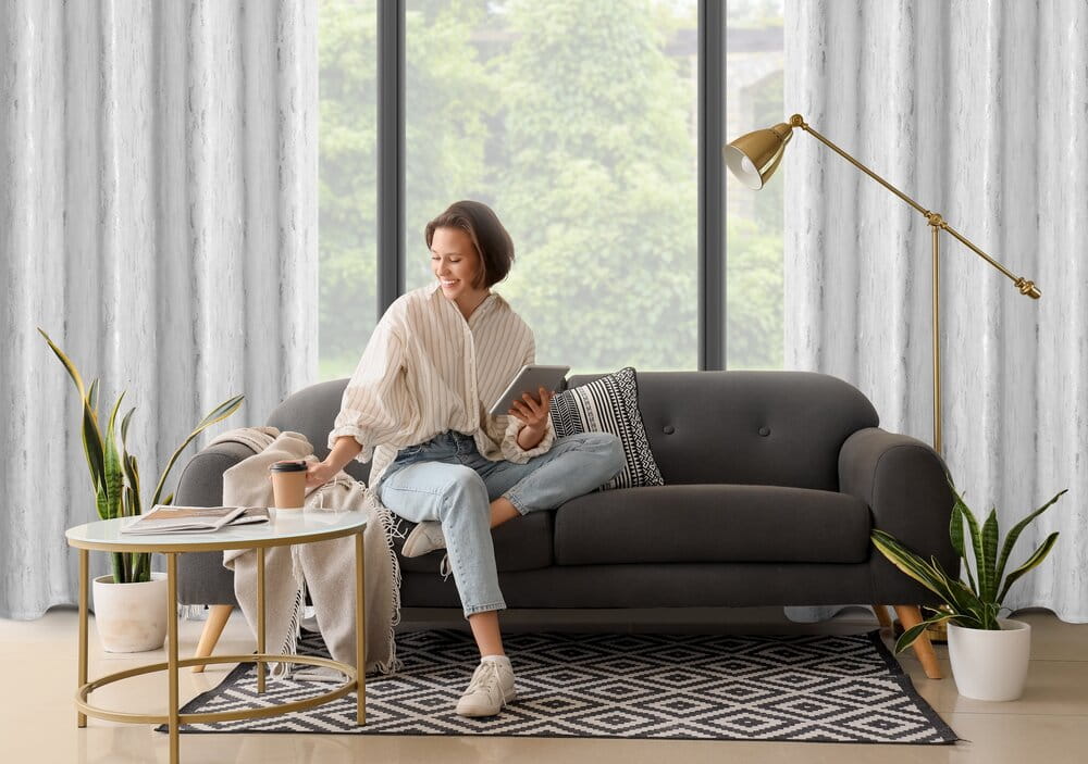 Zasłona welwetowa z nadrukiem błyszczącym szerokość: 140 cm, długość: 250 cm, kolor: biały, Gramatura: 200 GSM, Skład: 100% poliester