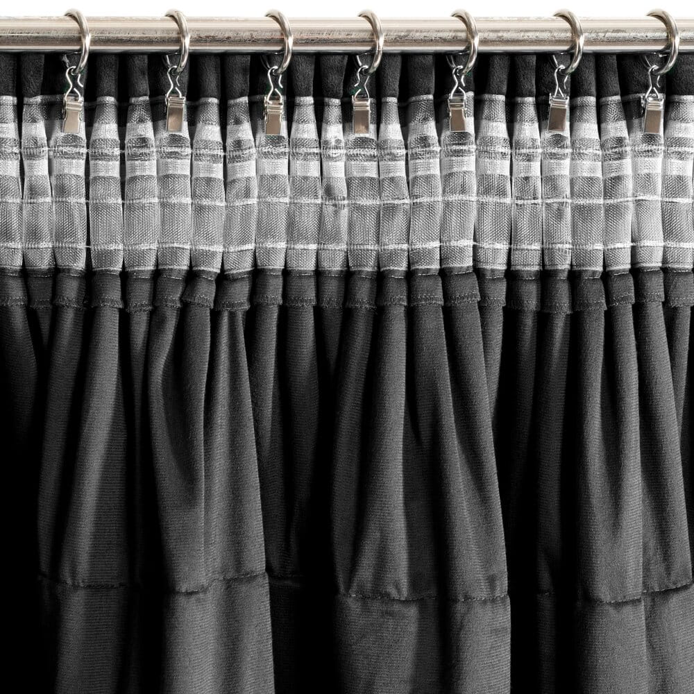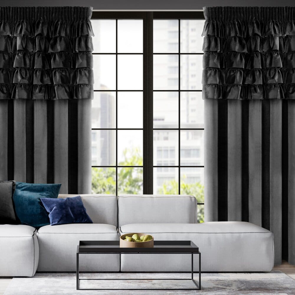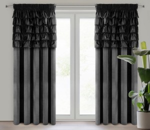 Zasłona gotowa welwetowa z falbanami od góry szerokość: 140 cm, długość: 270 cm, kolor: czarny, Gramatura: 200 GSM, Skład: 100% poliester