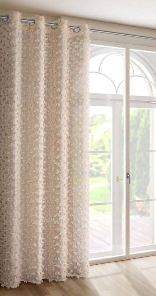 Zasłona gotowa z aplikacją szerokość: 135 cm, długość: 250 cm, kolor: beżowy, Gramatura: 140 GSM, Skład: 100% poliester