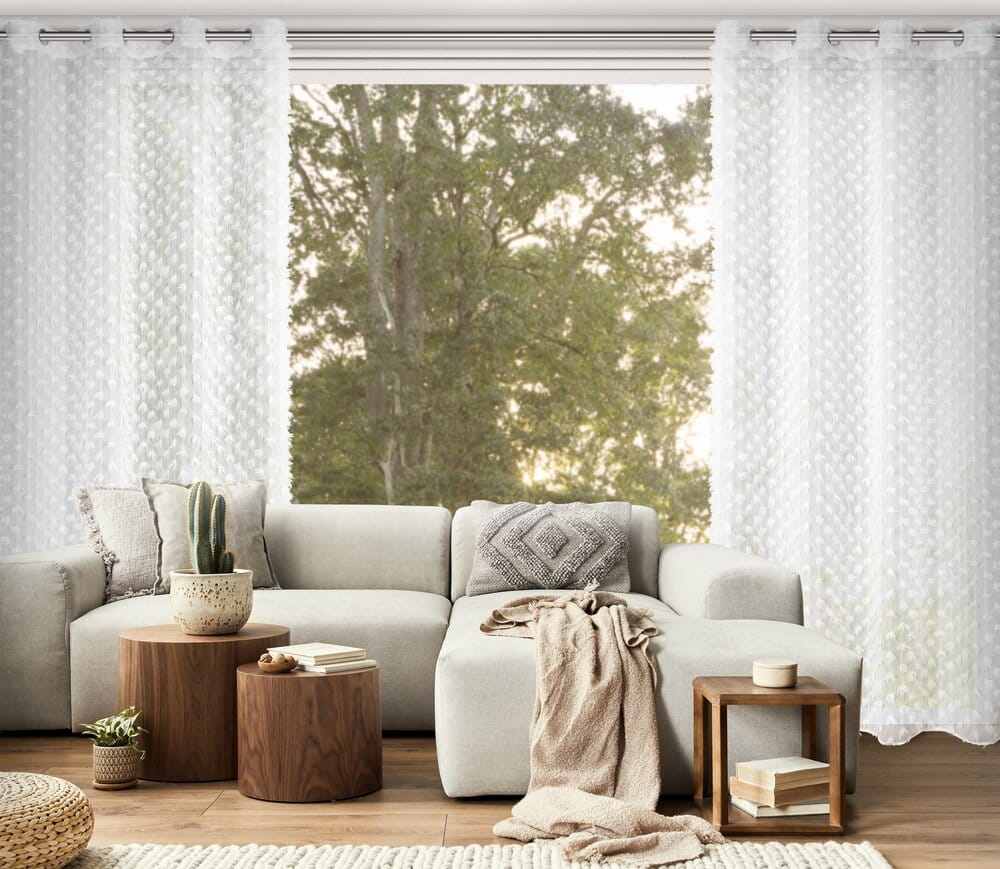 Zasłona gotowa z aplikacją szerokość: 135 cm, długość: 250 cm, kolor: biały, Gramatura: 140 GSM, Skład: 100% poliester