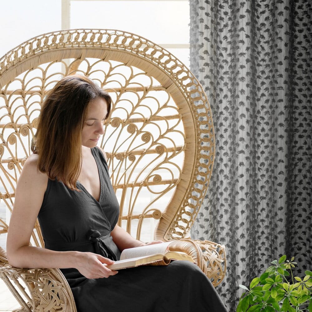 Zasłona gotowa z aplikacją szerokość: 135 cm, długość: 250 cm, kolor: czarny, Gramatura: 140 GSM, Skład: 100% poliester