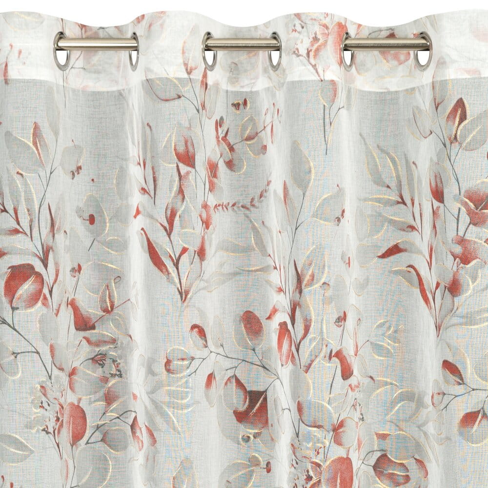 Zasłona z motywem botanicznym z błyszczącym nadrukiem szerokość: 140 cm, długość: 250 cm, kolor: biały, Gramatura: 70 GSM, Skład: 100% poliester