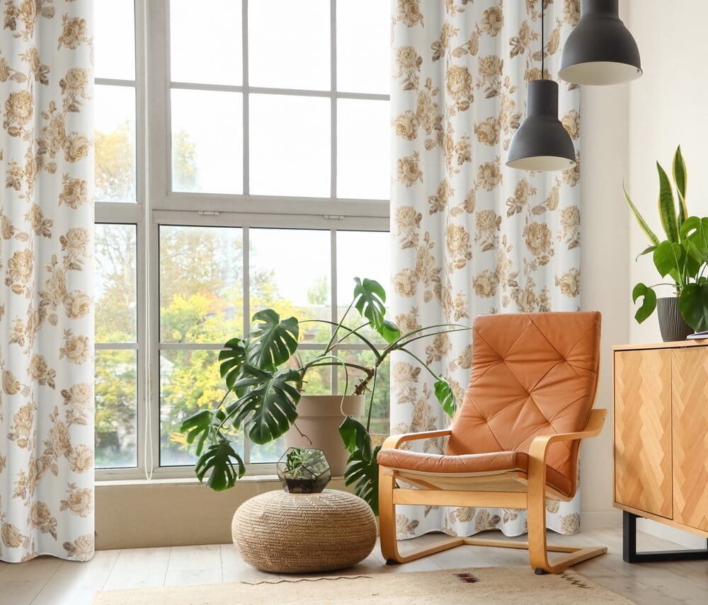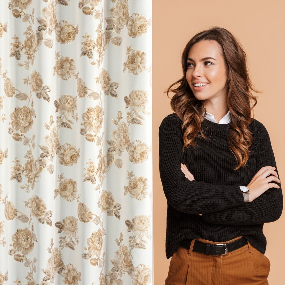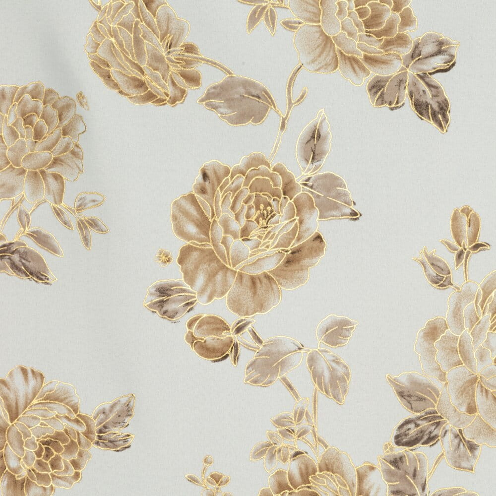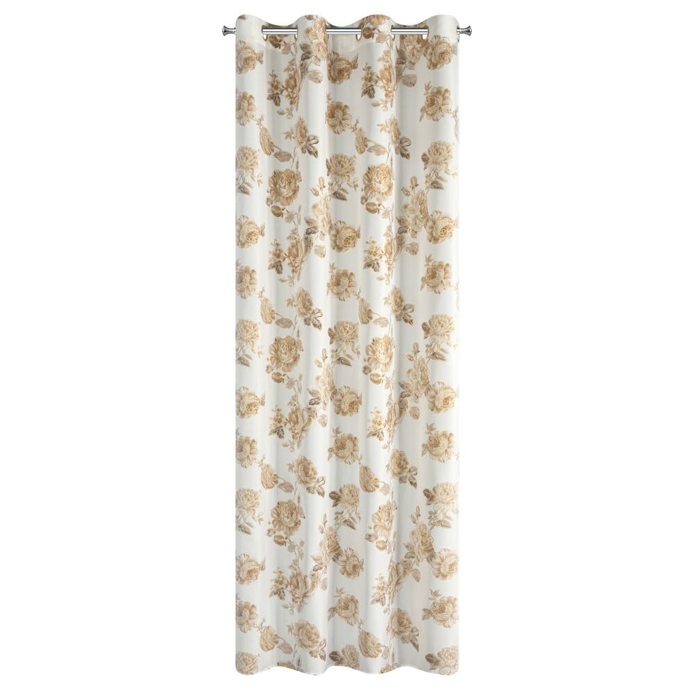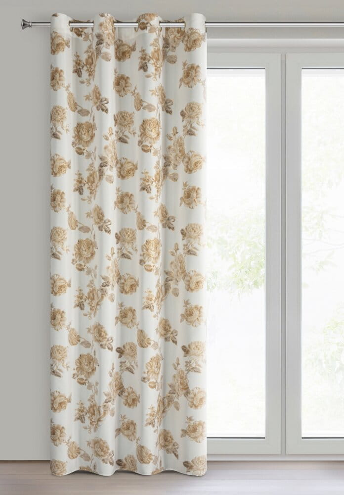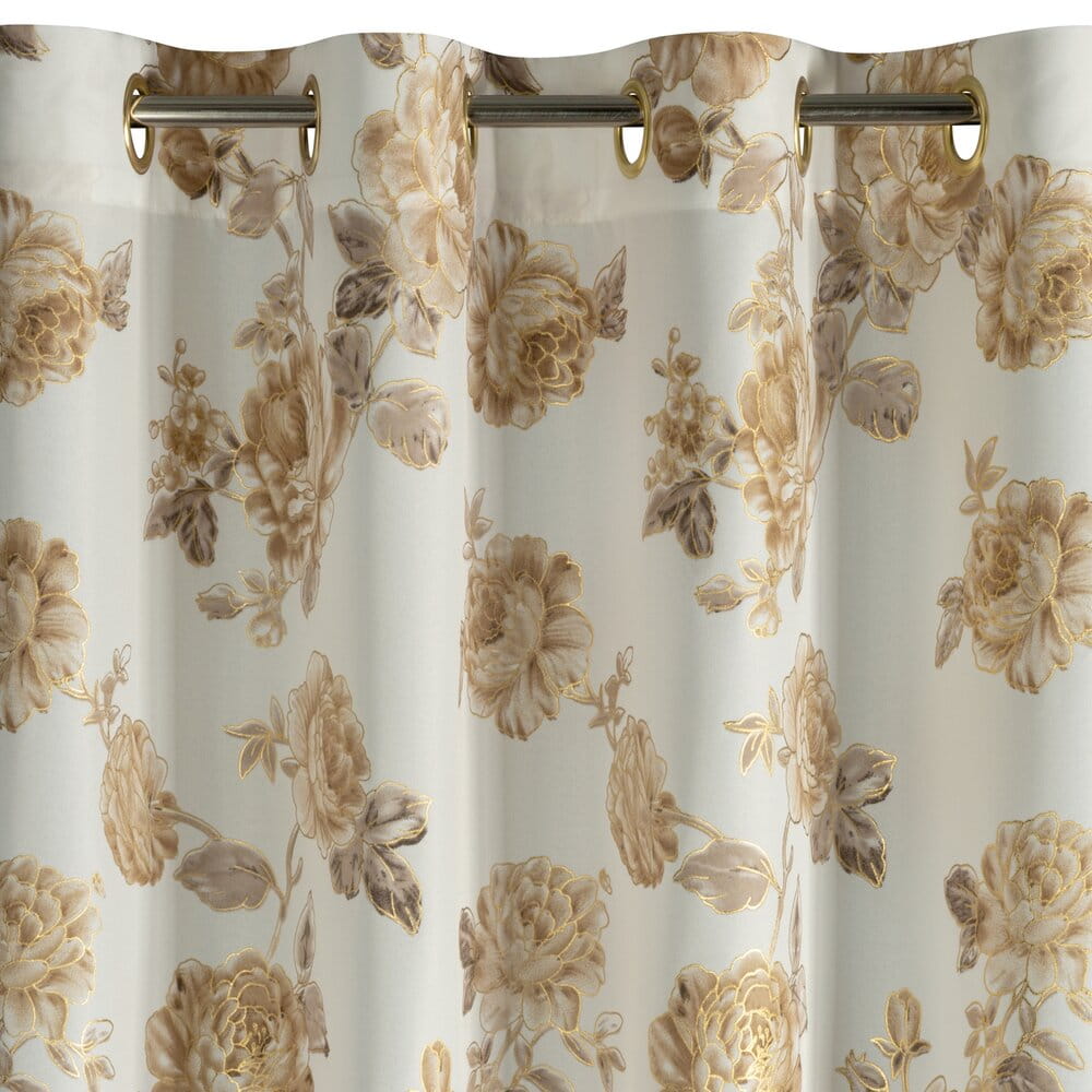 Zasłona z motywem kwiatów z błyszczącym nadrukiem szerokość: 140 cm, długość: 250 cm, kolor: biały, Gramatura: 135 GSM, Skład: 100% poliester