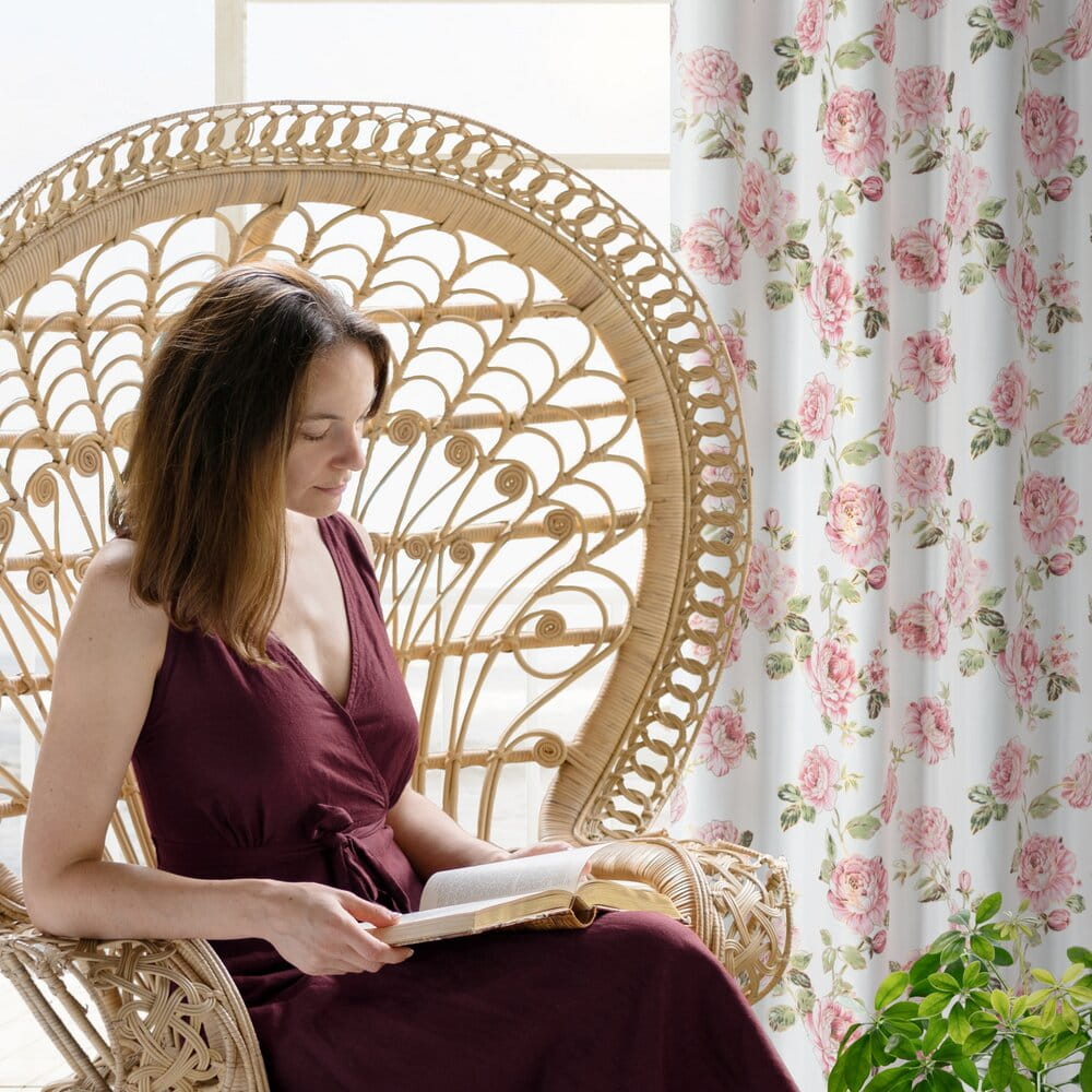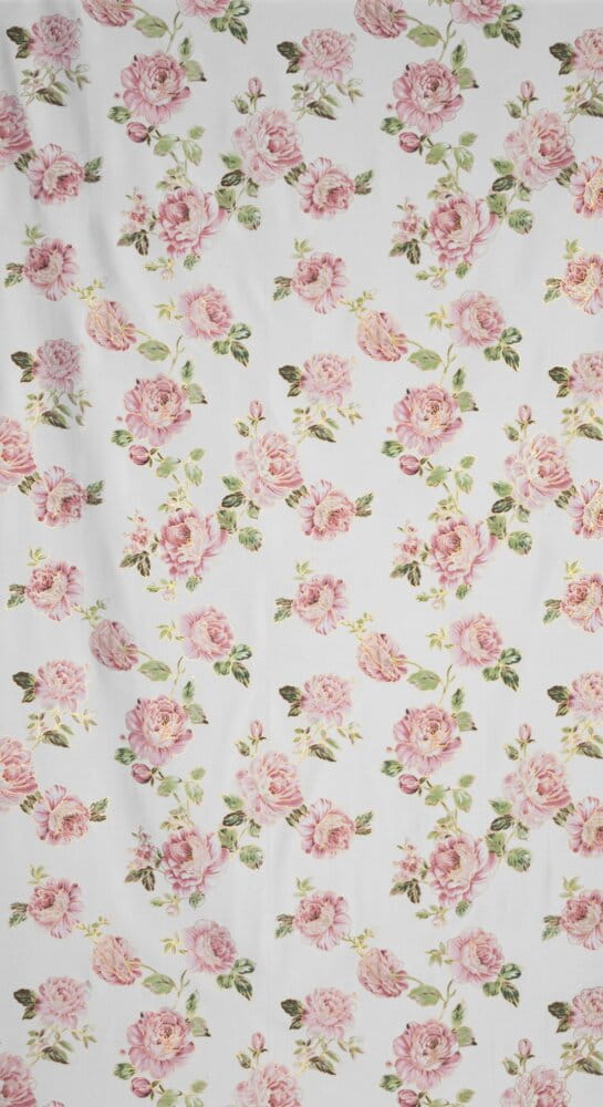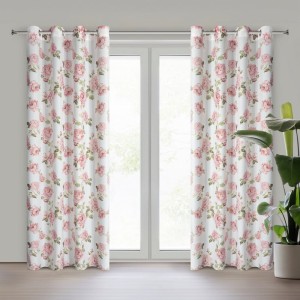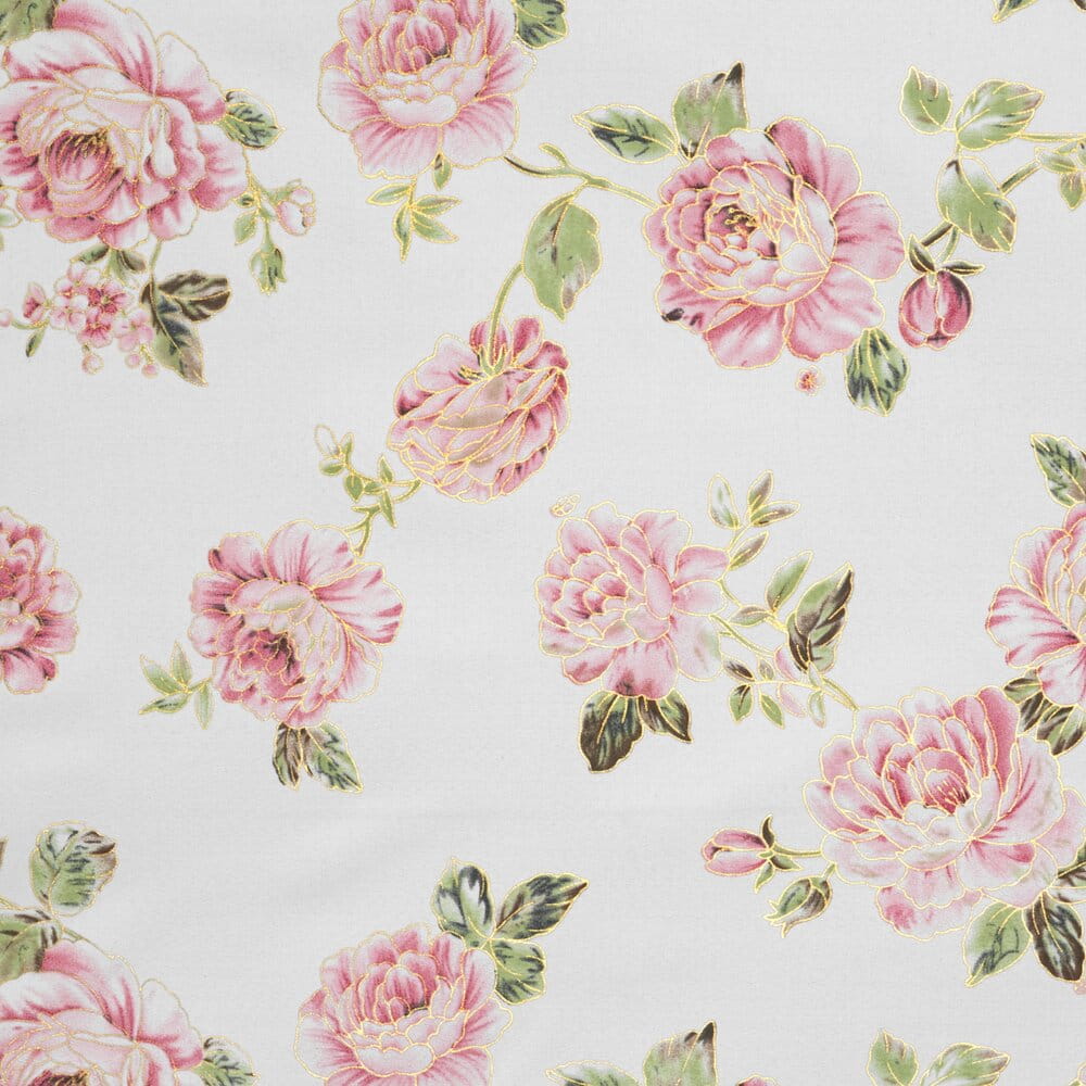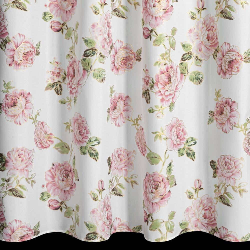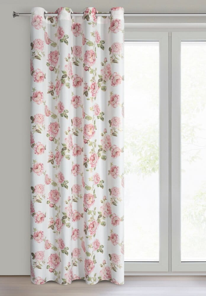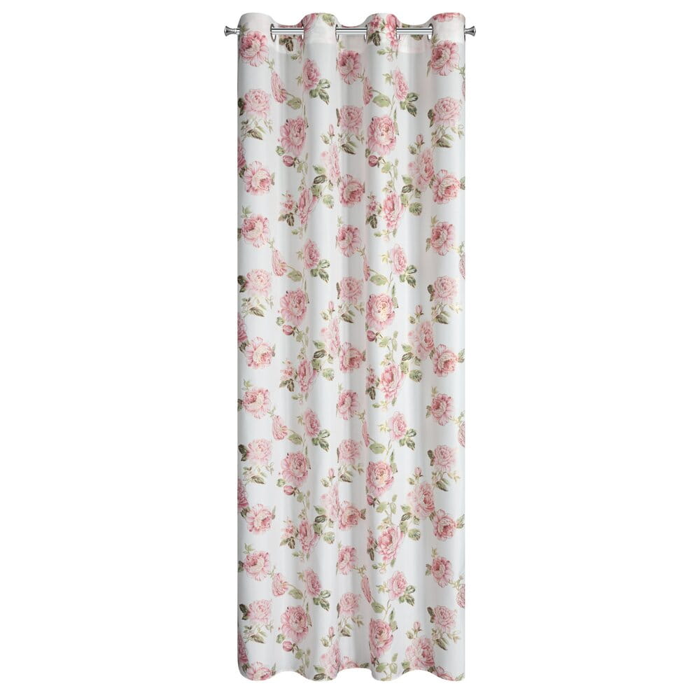 Zasłona z motywem kwiatów z błyszczącym nadrukiem szerokość: 140 cm, długość: 250 cm, kolor: biały, Gramatura: 135 GSM, Skład: 100% poliester
