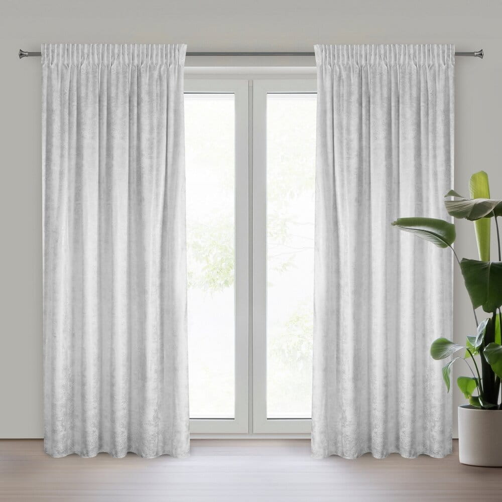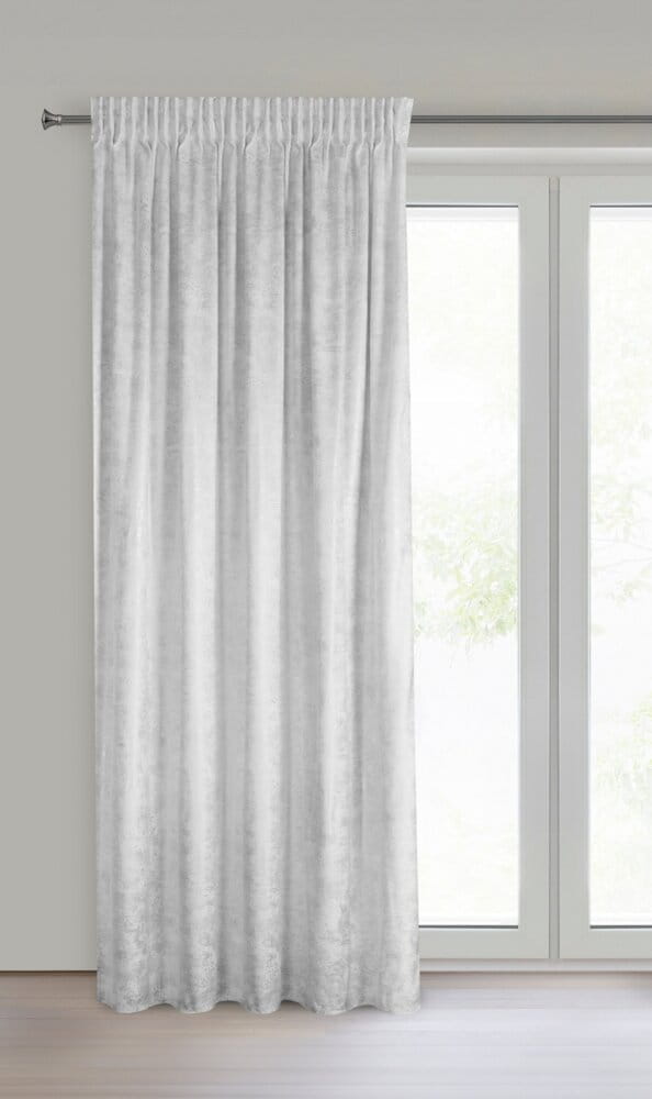 Zasłona gotowa welwetowa z błyszczącym nadrukiem szerokość: 135 cm, długość: 270 cm, kolor: biały, Gramatura: 200 GSM, Skład: 100% poliester