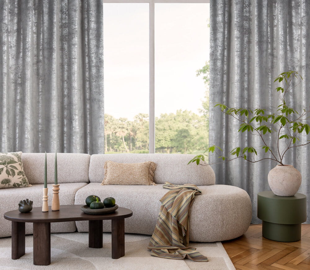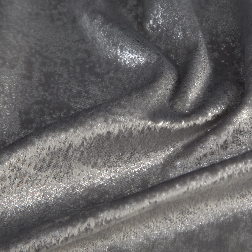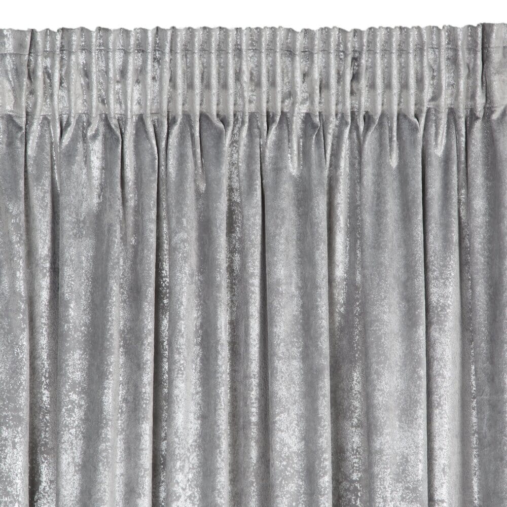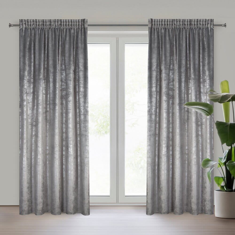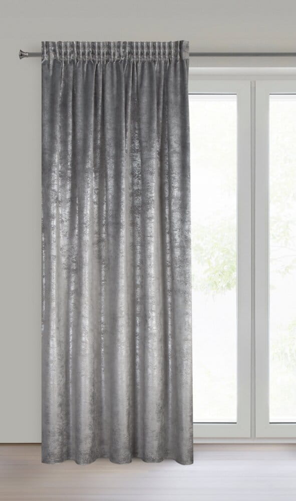 Zasłona gotowa welwetowa z błyszczącym nadrukiem szerokość: 135 cm, długość: 270 cm, kolor: stalowy, Gramatura: 200 GSM, Skład: 100% poliester