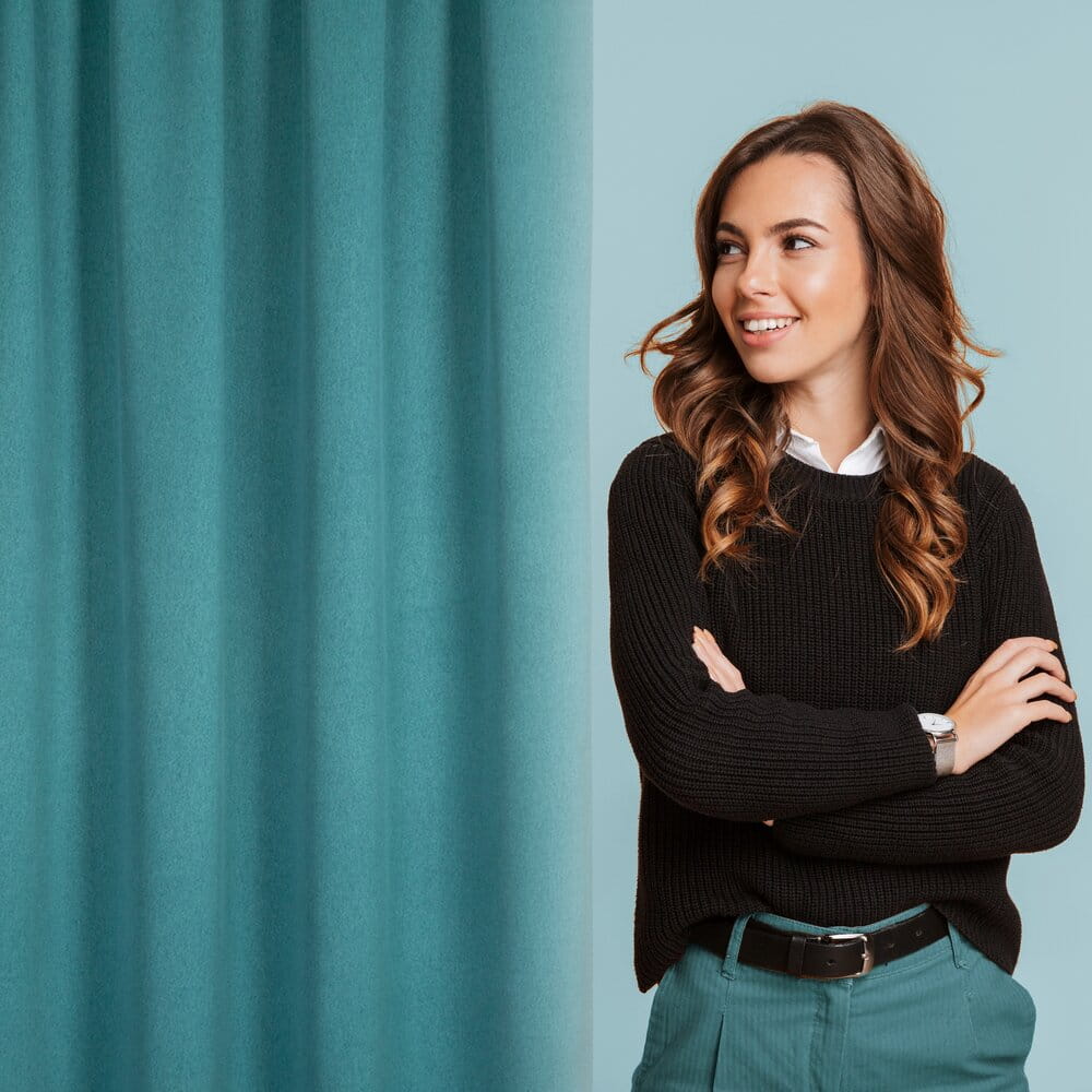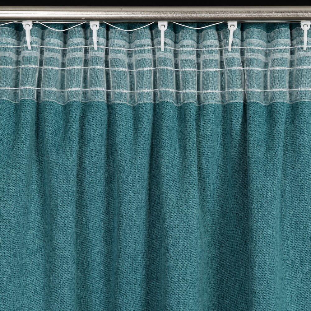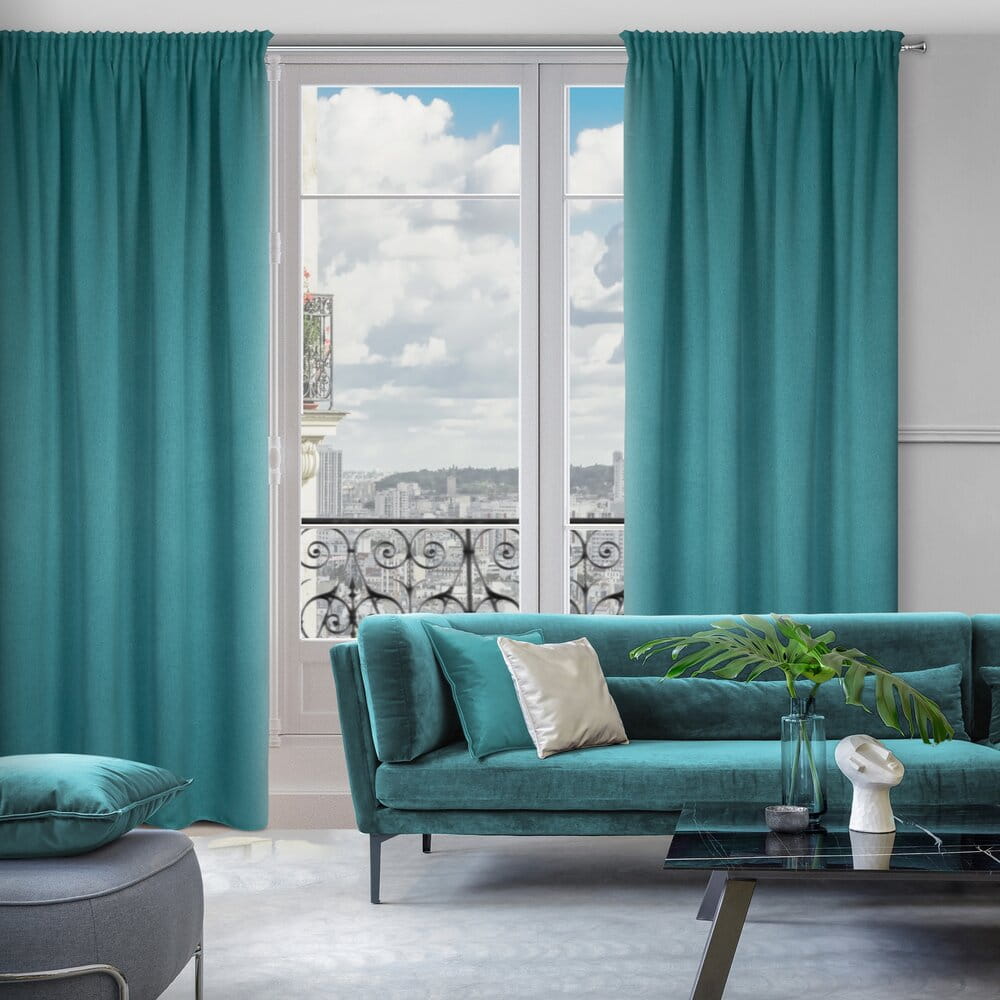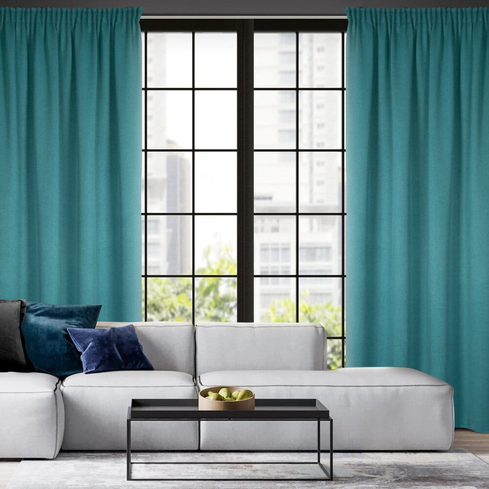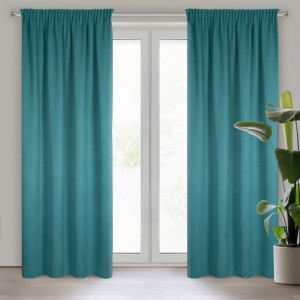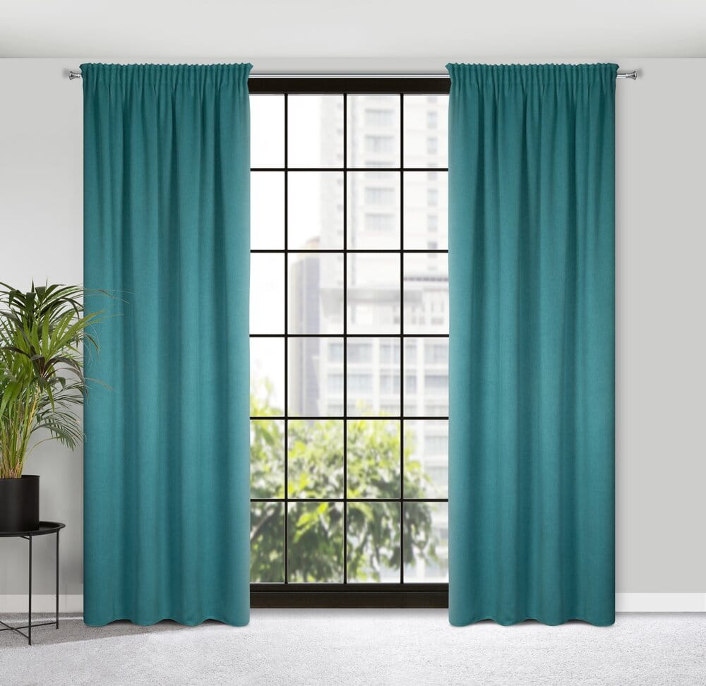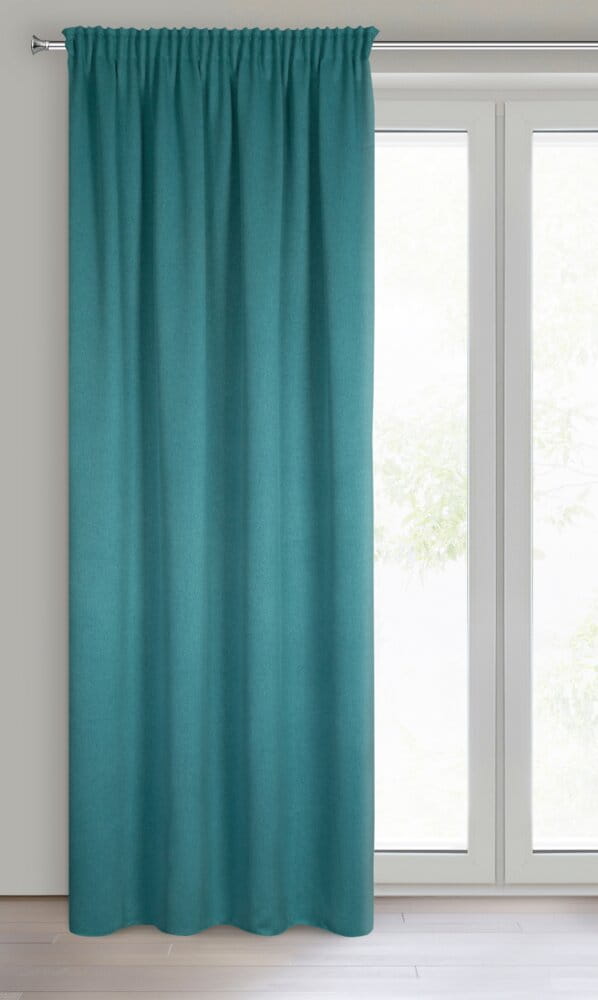 Zasłona zaciemniająca jednokolorowa strukturalna typu blackout szerokość: 130 cm, długość: 300 cm, kolor: ciemnoturkusowy, Gramatura: 340 GSM, Skład: 100% poliester
