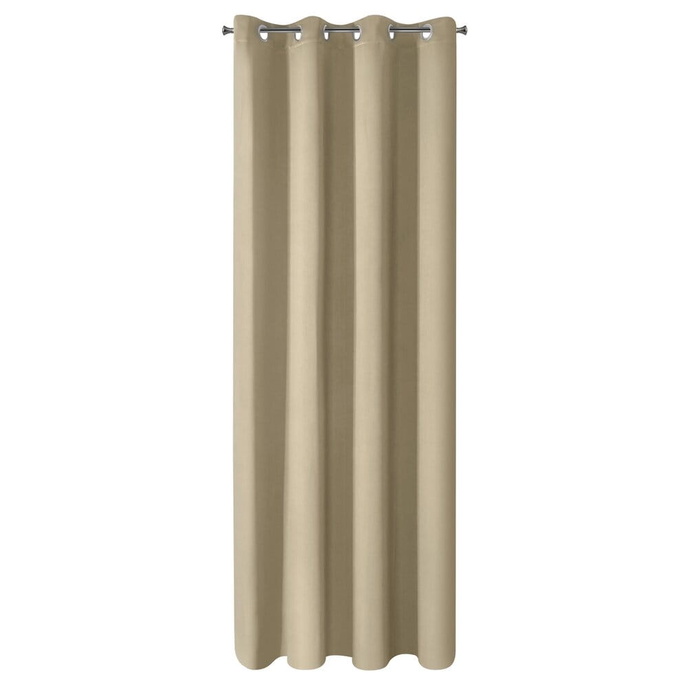 Zasłona zaciemniająca z mięsistej tkaniny typu blackout. Doskonała izolacja cieplna i akustyczna wnetrza. Jednokolorowa zasłona o minimalistycznym designie. szerokość: 140 cm, długość: 250 cm, kolor: beżowy, Gramatura: 210 GSM, Skład: 100% poliester