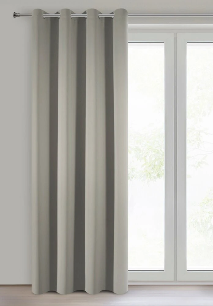 Zasłona zaciemniająca z mięsistej tkaniny typu blackout. Doskonała izolacja cieplna i akustyczna wnetrza. Jednokolorowa zasłona o minimalistycznym designie. szerokość: 140 cm, długość: 250 cm, kolor: ciemnobeżowy, Gramatura: 210 GSM, Skład: 100% poliester