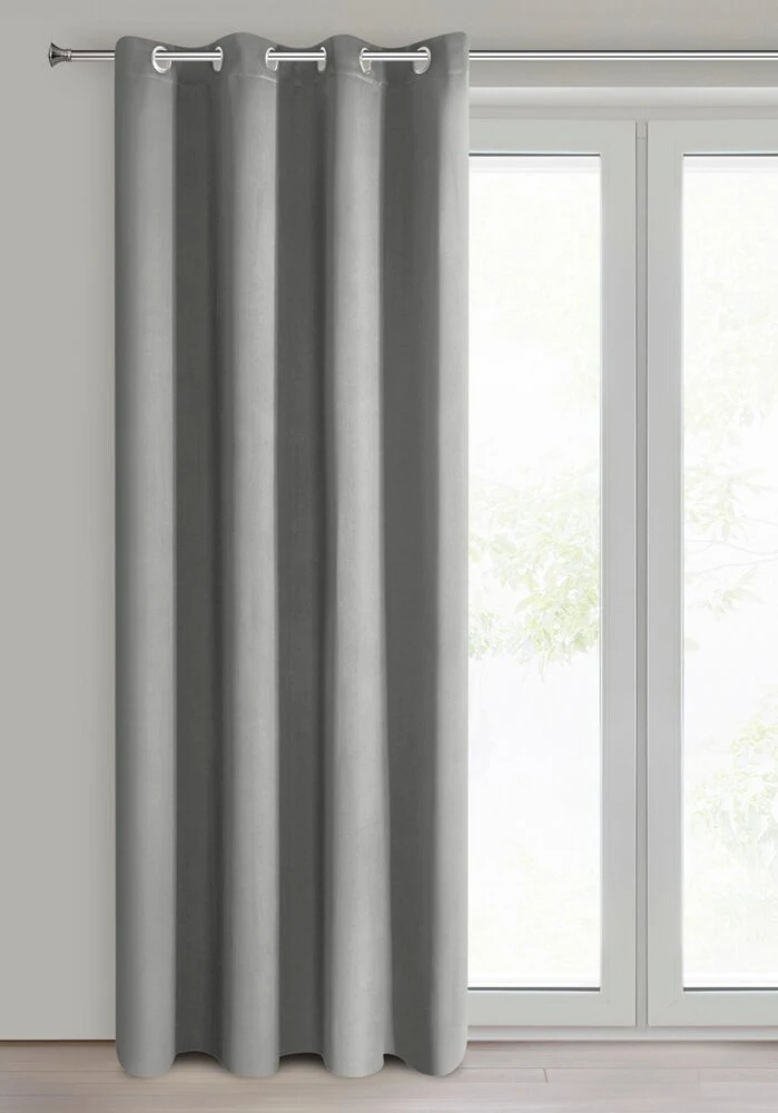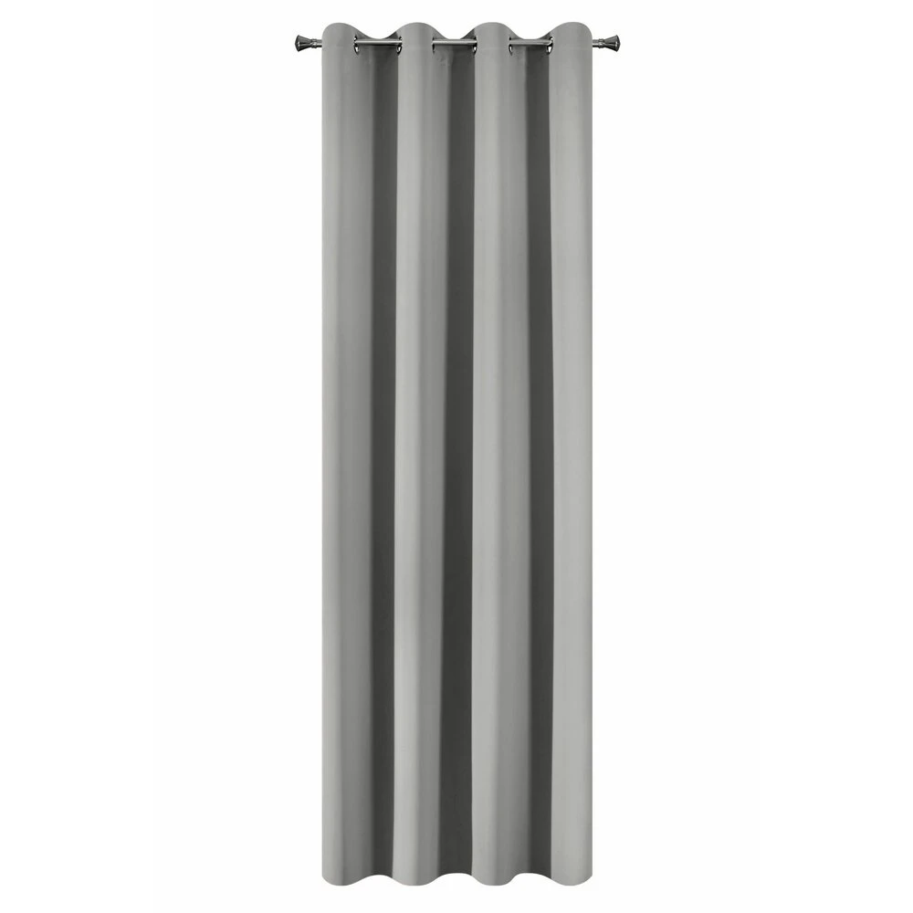 Zasłona zaciemniająca z mięsistej tkaniny typu blackout. Doskonała izolacja cieplna i akustyczna wnetrza. Jednokolorowa zasłona o minimalistycznym designie. szerokość: 140 cm, długość: 250 cm, kolor: szary, Gramatura: 210 GSM, Skład: 100% poliester