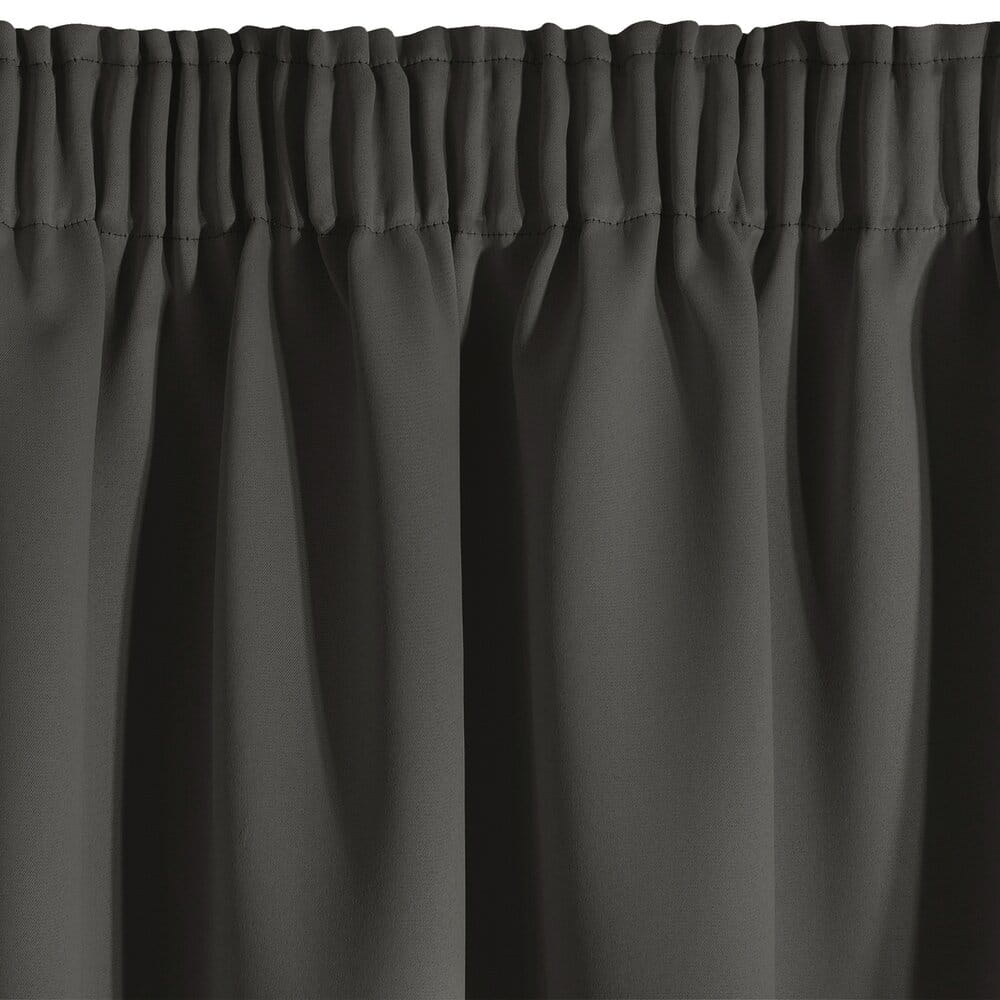 Zasłona zaciemniająca z mięsistej tkaniny typu blackout. Doskonała izolacja cieplna i akustyczna wnetrza. Jednokolorowa zasłona o minimalistycznym designie. szerokość: 140 cm, długość: 270 cm, kolor: grafitowy, Gramatura: 210 GSM, Skład: 100% poliester