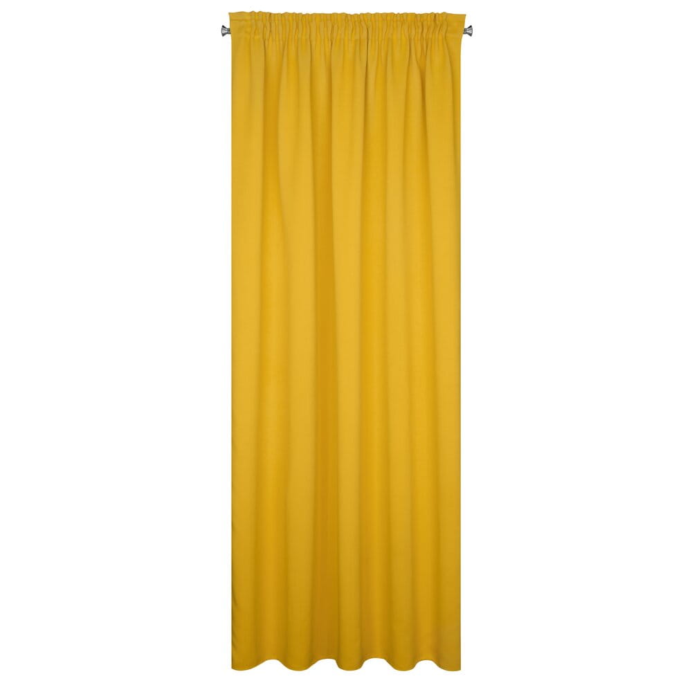 Zasłona zaciemniająca z mięsistej tkaniny typu blackout. Doskonała izolacja cieplna i akustyczna wnetrza. Jednokolorowa zasłona o minimalistycznym designie. szerokość: 140 cm, długość: 270 cm, kolor: musztardowy, Gramatura: 210 GSM, Skład: 100% poliester