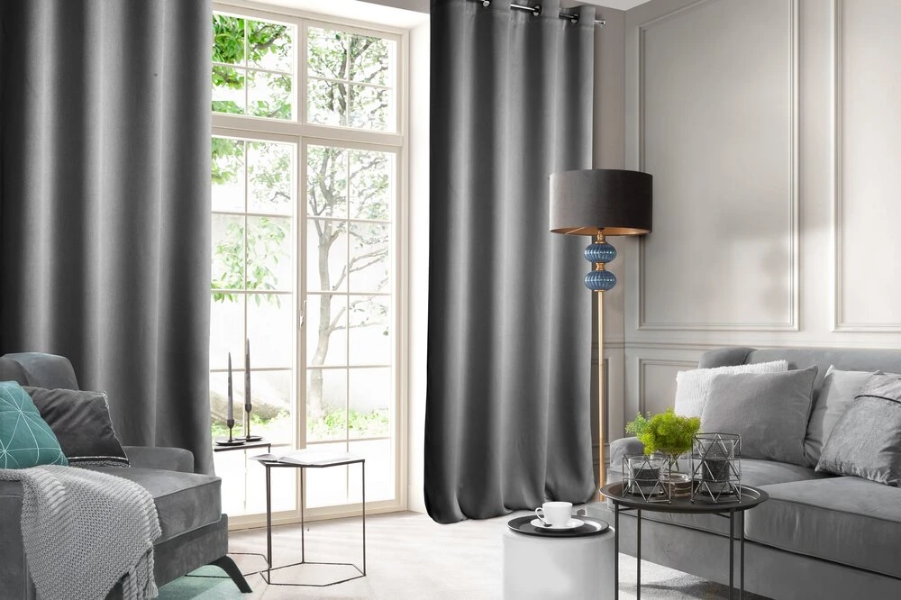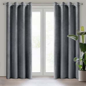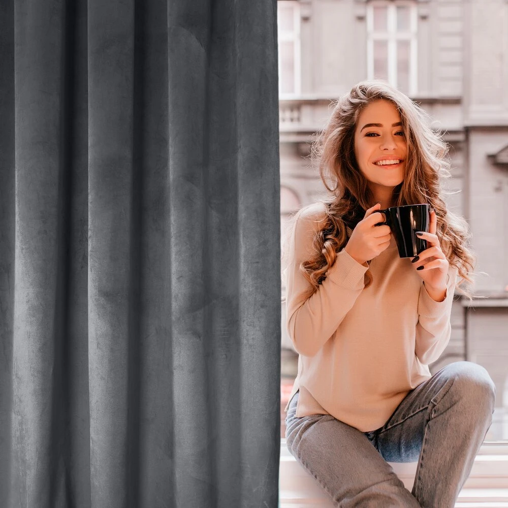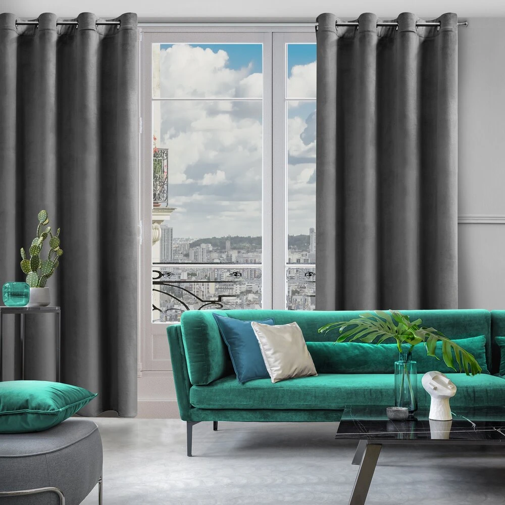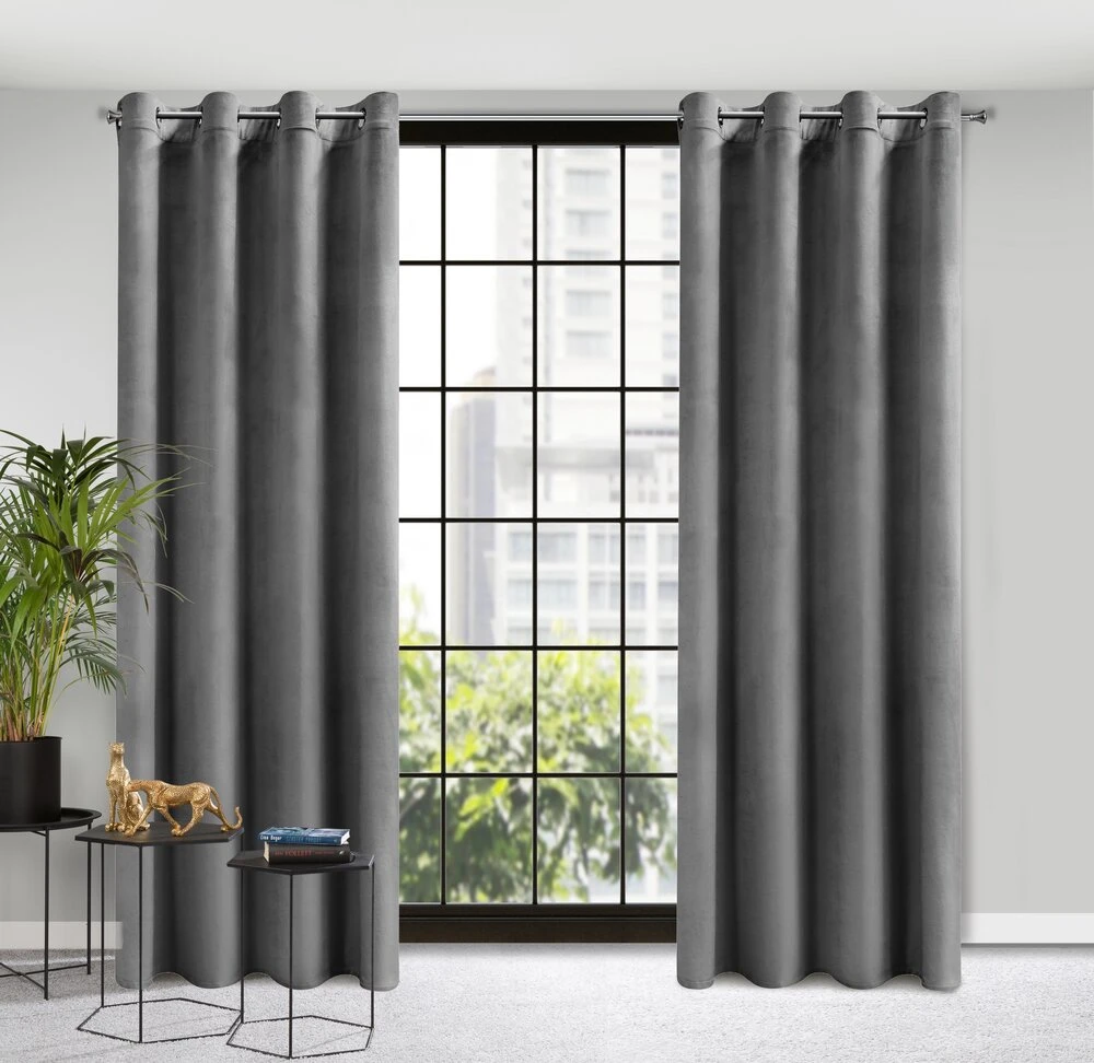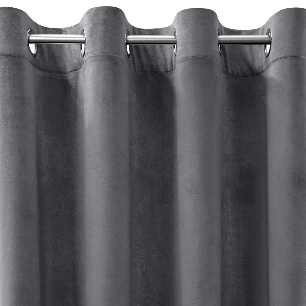 Zasłona welwetowa jednokolorowa szerokość: 140 cm, długość: 250 cm, kolor: grafitowy, Gramatura: 200 GSM, Skład: 100% poliester