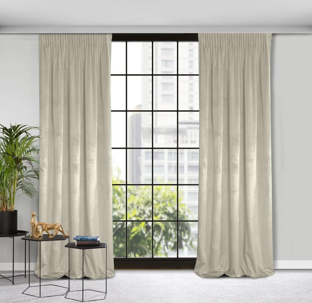 Zasłona welwetowa jednokolorowa szerokość: 135 cm, długość: 300 cm, kolor: beżowy, Gramatura: 200 GSM, Skład: 100% poliester