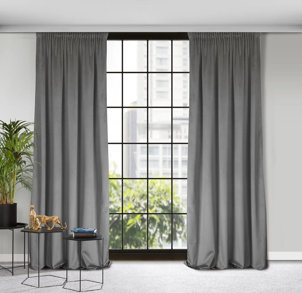 Zasłona welwetowa jednokolorowa szerokość: 135 cm, długość: 300 cm, kolor: stalowy, Gramatura: 200 GSM, Skład: 100% poliester