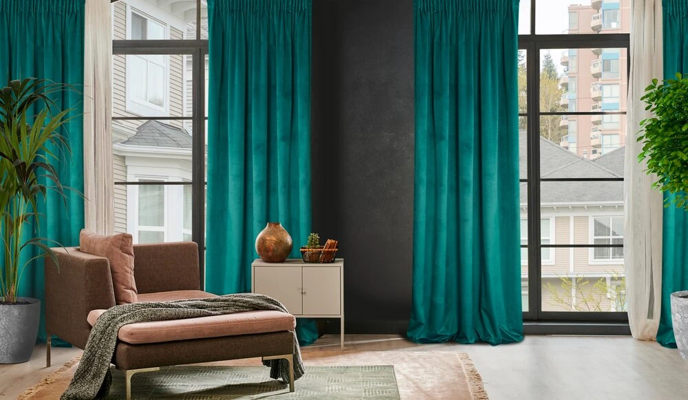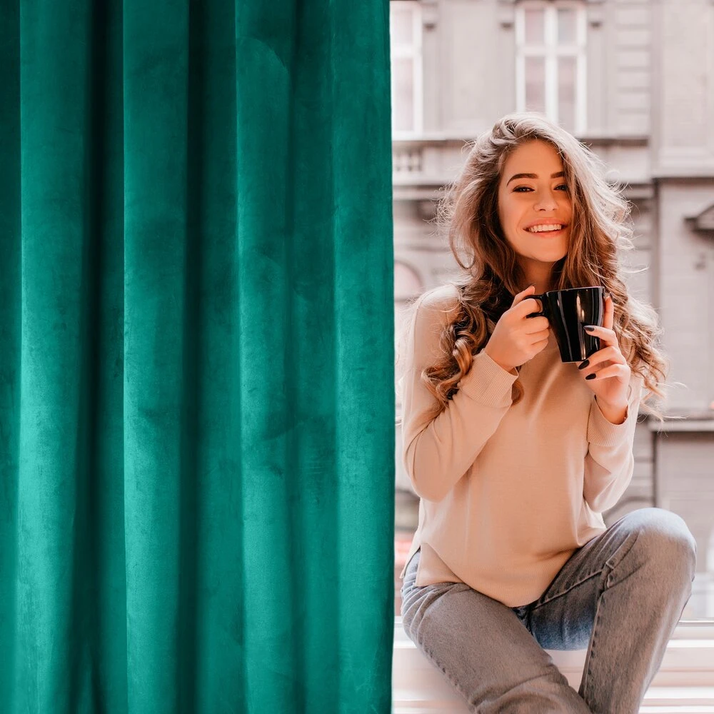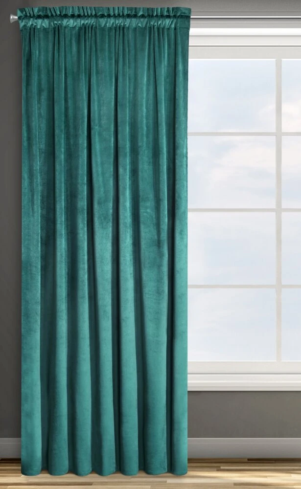 Zasłona welwetowa jednokolorowa szerokość: 140 cm, długość: 270 cm, kolor: ciemnoturkusowy, Gramatura: 200 GSM, Skład: 100% poliester