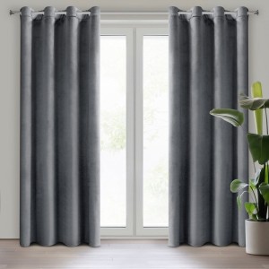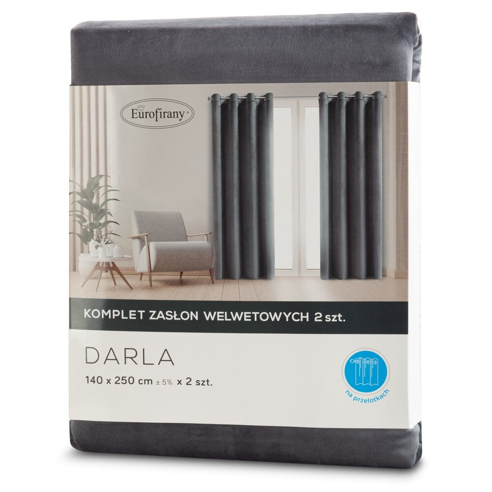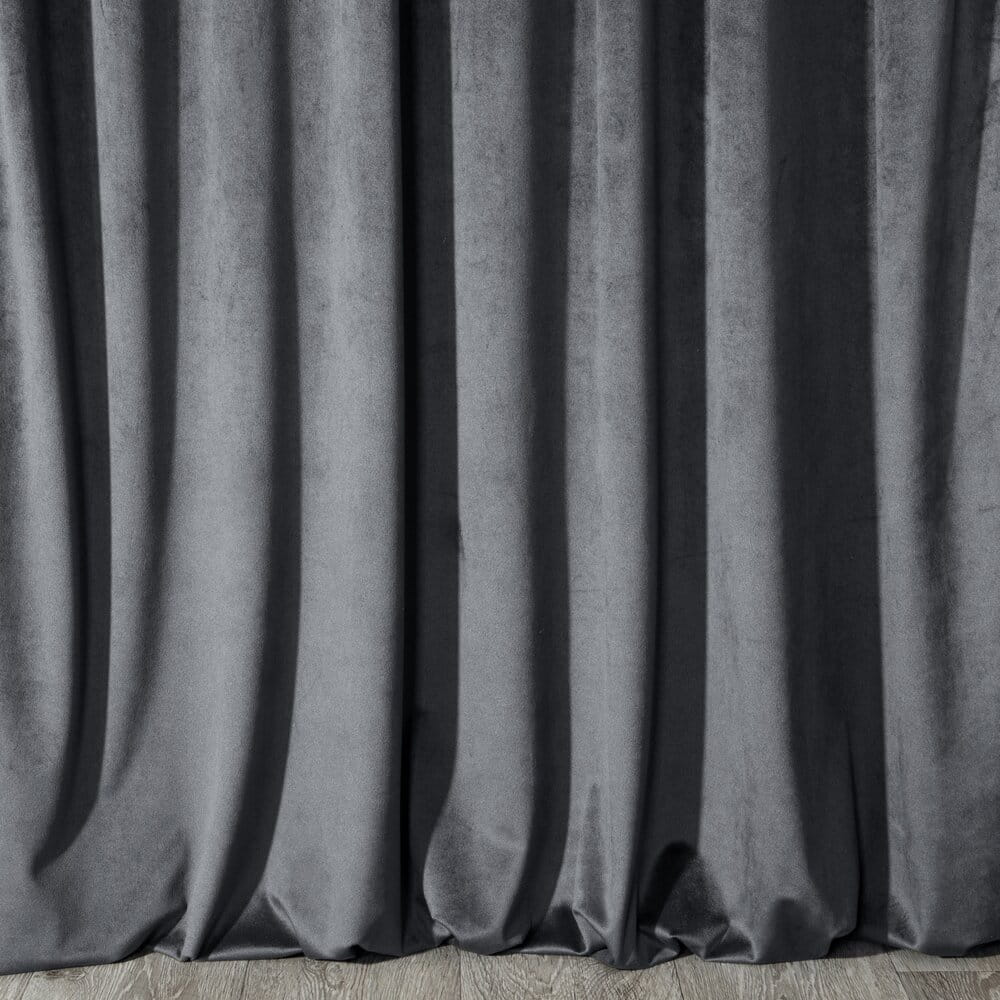 Komplet zasłon gotowych welwetowych szerokość: 140 cm, długość: 250 cm, kolor: grafitowy, Gramatura: 200 GSM, Skład: 100% poliester