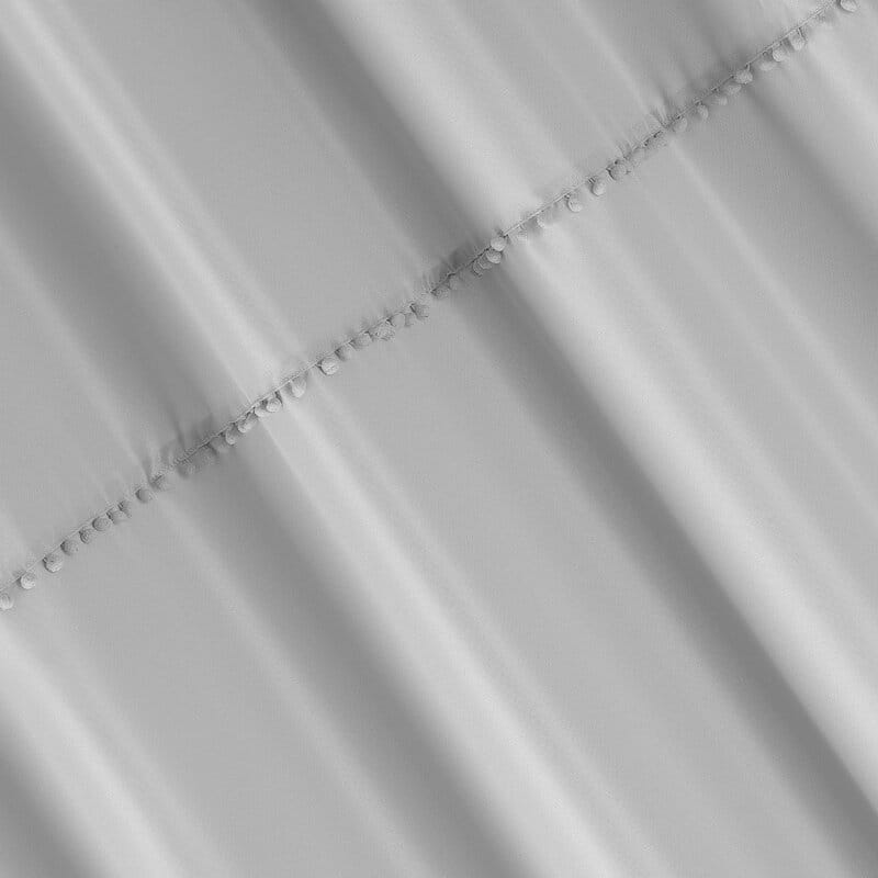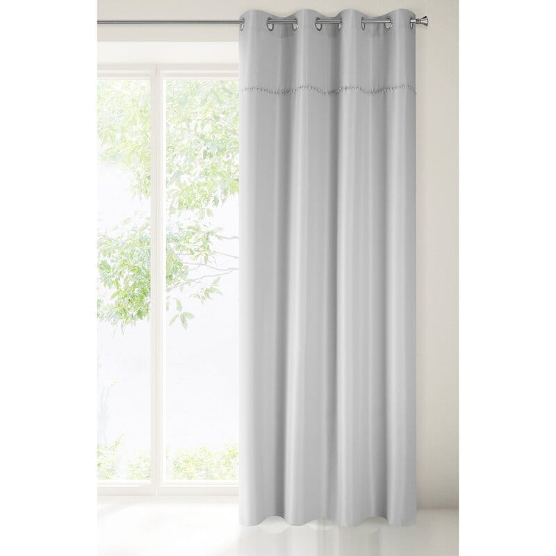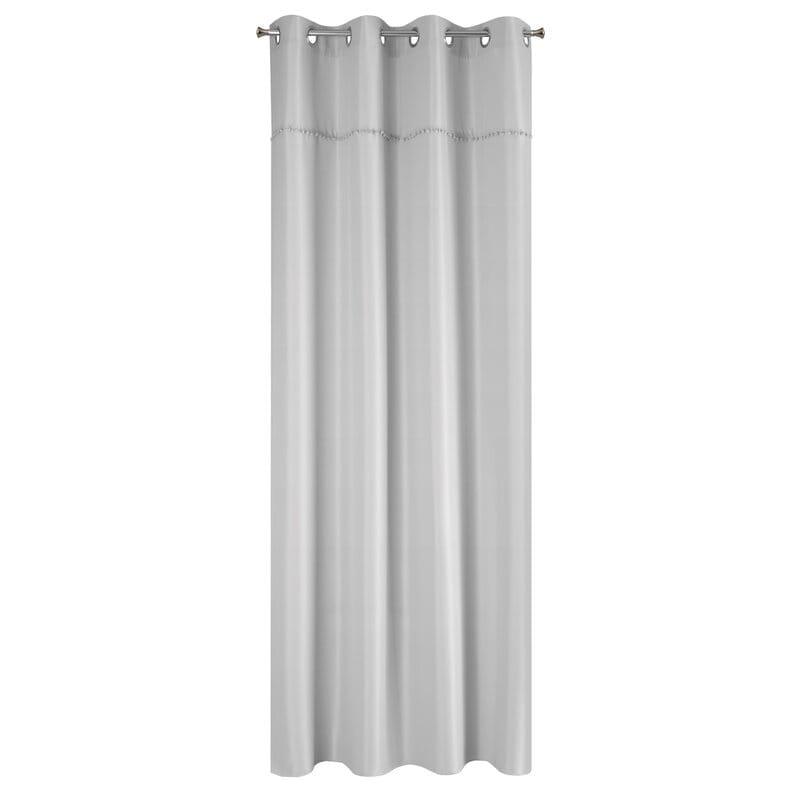 Delikatna, półprzejrzysta zasłona jednokolorowa została ozdobiona subtelną lamówką z pomponami w stylu boho. Miękka tkanina jest bardzo łatwa w prasowaniu. szerokość: 135 cm, długość: 260 cm, kolor: stalowy, Gramatura: 140 GSM, Skład: 100% poliester