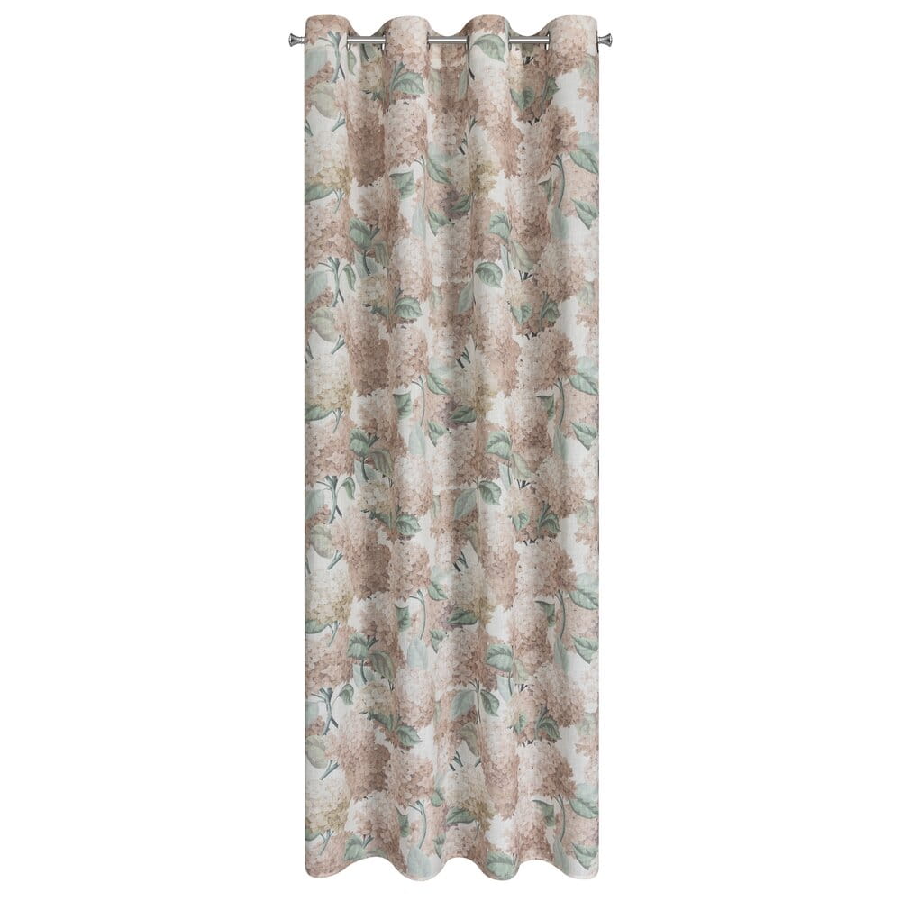 Zasłona gotowa z motywem kwiatów, z domieszką lnu szerokość: 140 cm, długość: 250 cm, kolor: naturalny, Gramatura: 220 GSM, Skład: 15% len, 85% poliester