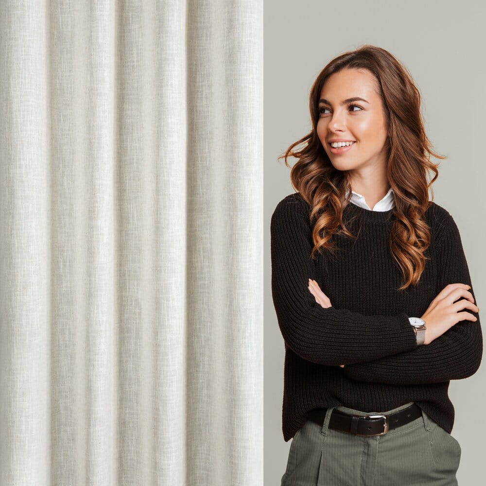Zasłona gotowa w stylu eko z domieszką lnu szerokość: 140 cm, długość: 250 cm, kolor: naturalny, Gramatura: 220 GSM, Skład: 4% len, 96% poliester