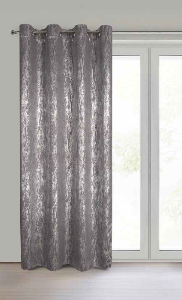 Zasłona gotowa zaciemniająca z nadrukiem błyszczącym szerokość: 140 cm, długość: 250 cm, kolor: stalowy, Gramatura: 230 GSM, Skład: 100% poliester