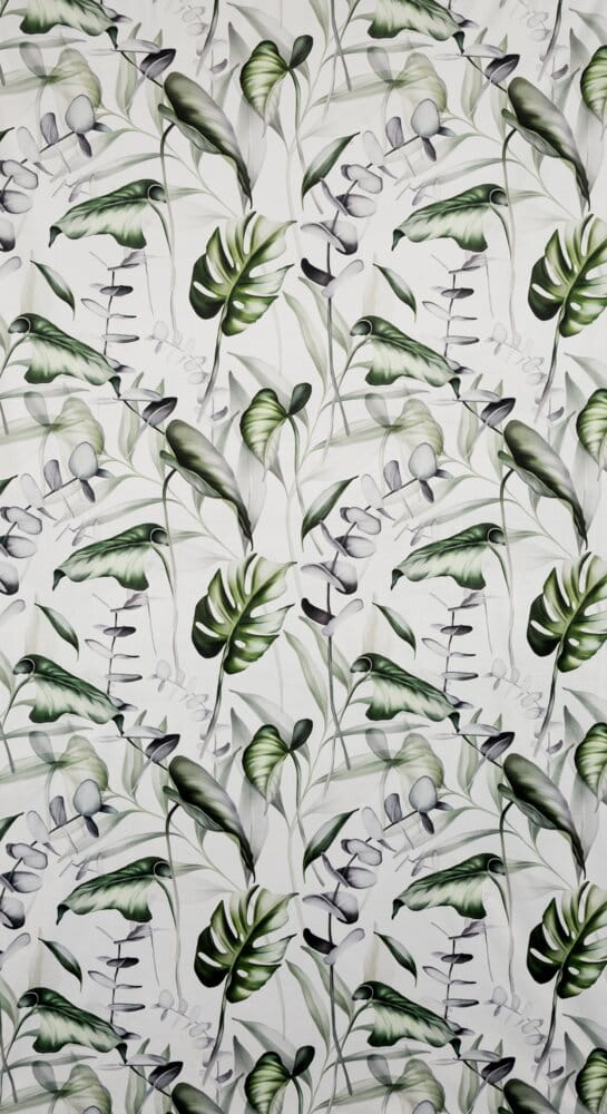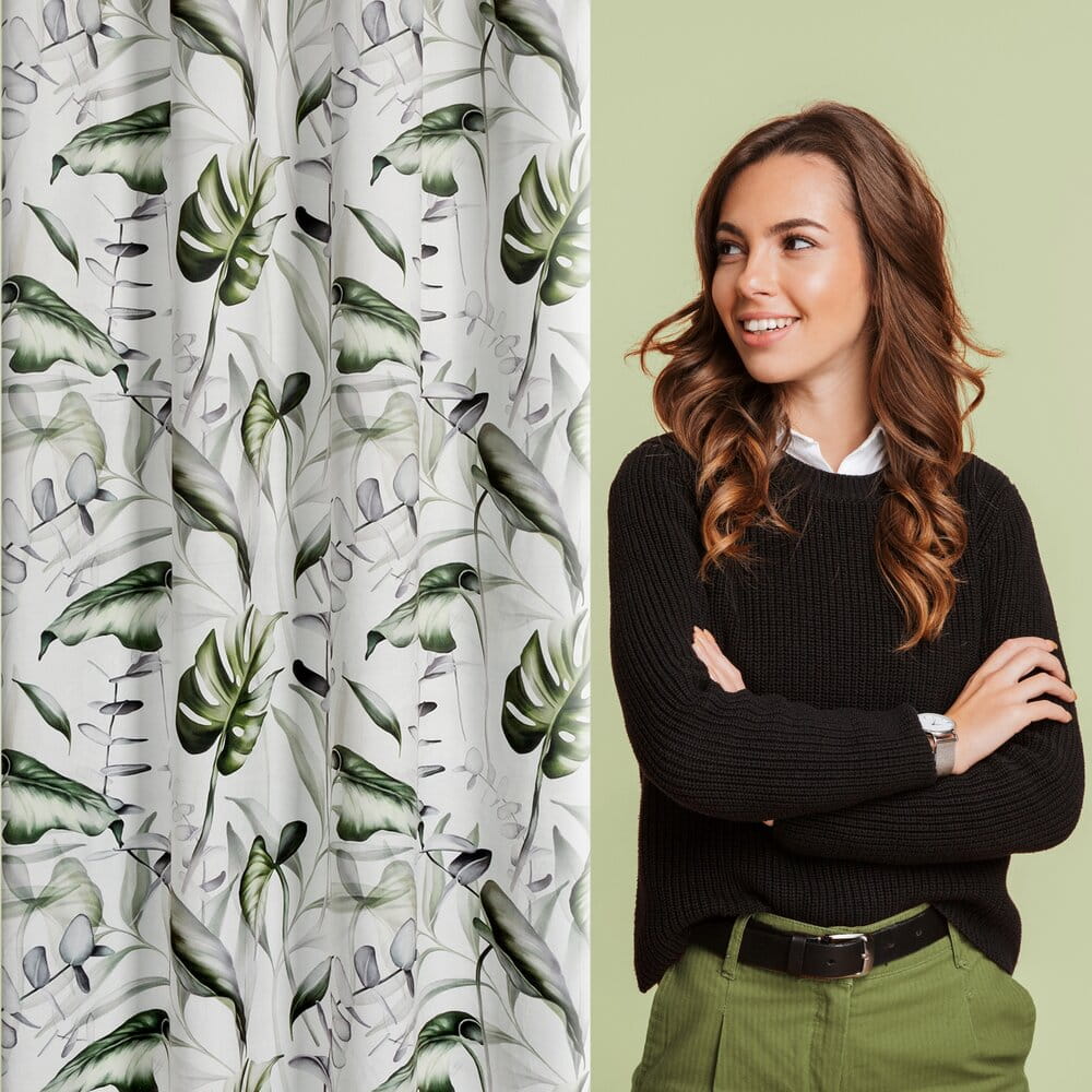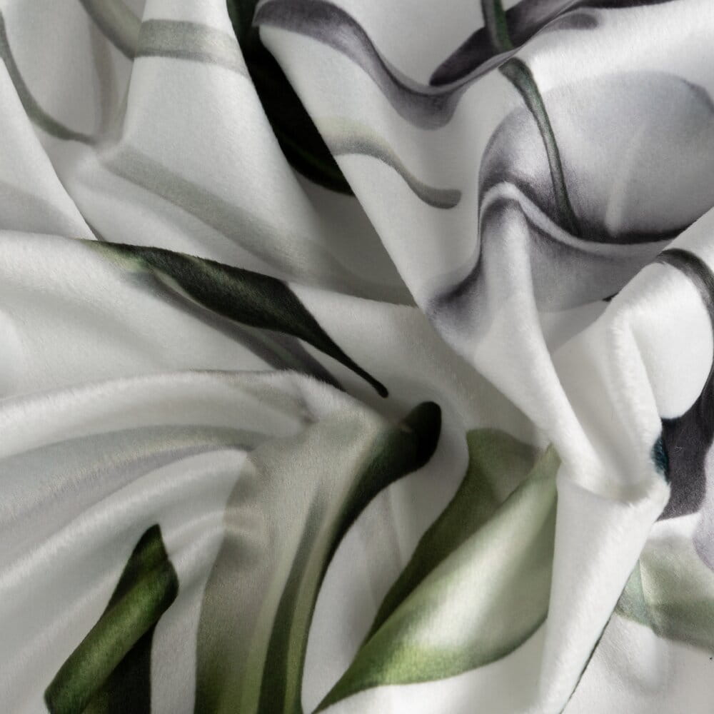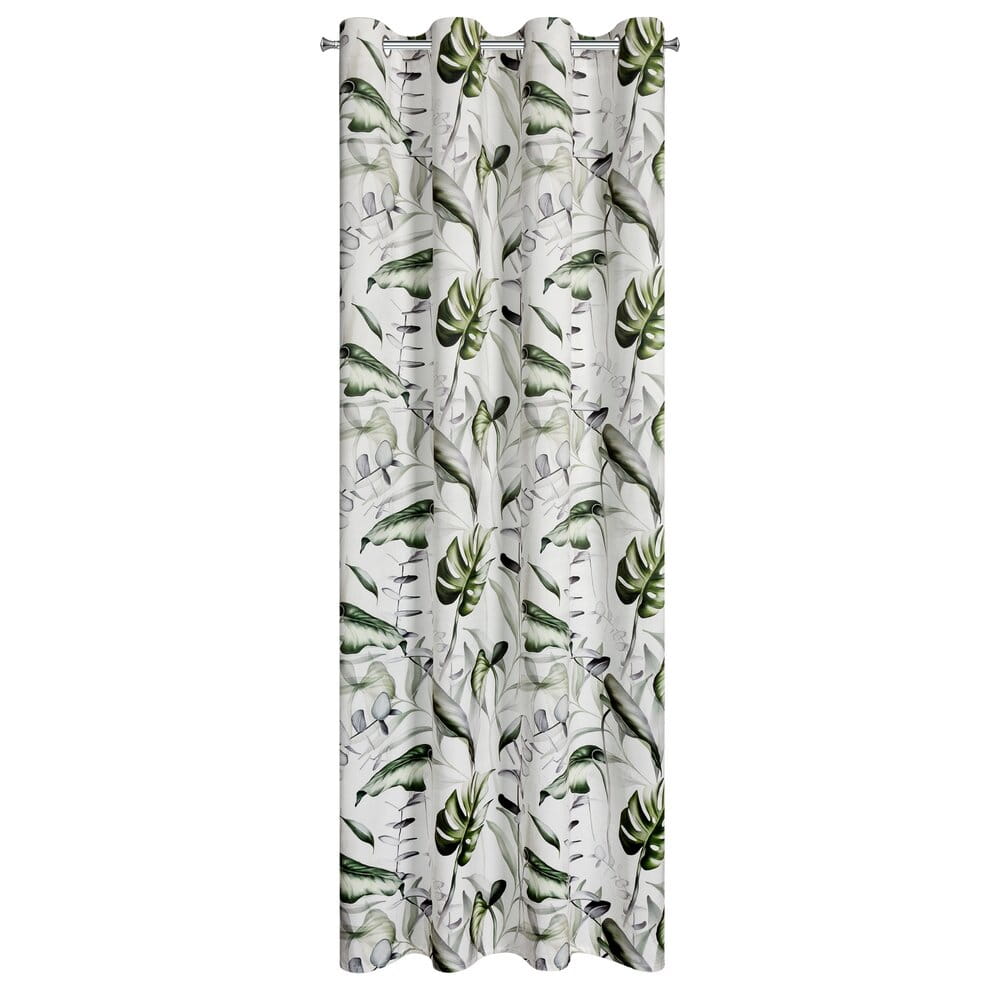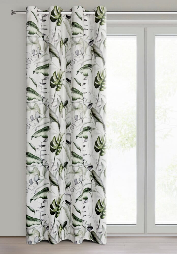 Zasłona gotowa welwetowa z nadrukiem z motywem botanicznym szerokość: 140 cm, długość: 250 cm, kolor: biały, Gramatura: 200 GSM, Skład: 100% poliester