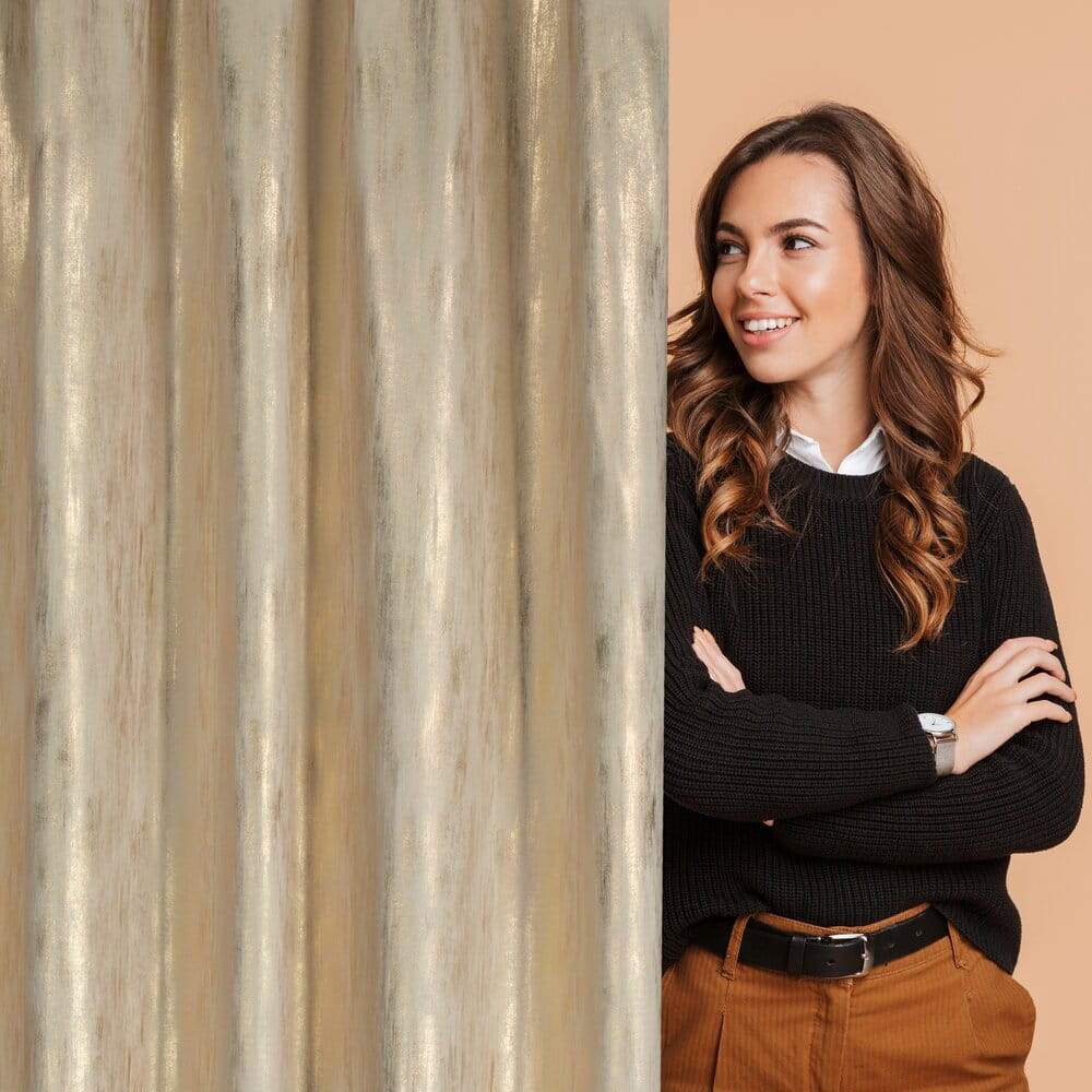 Gotowa zasłona welwetowa z błyszczącym nadrukiem szerokość: 140 cm, długość: 270 cm, kolor: kremowy, Gramatura: 200 GSM, Skład: 100% poliester