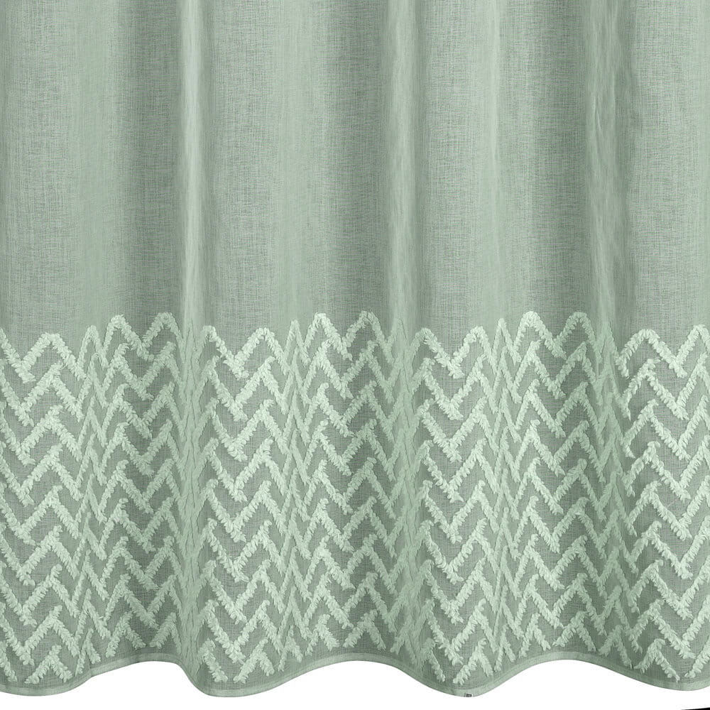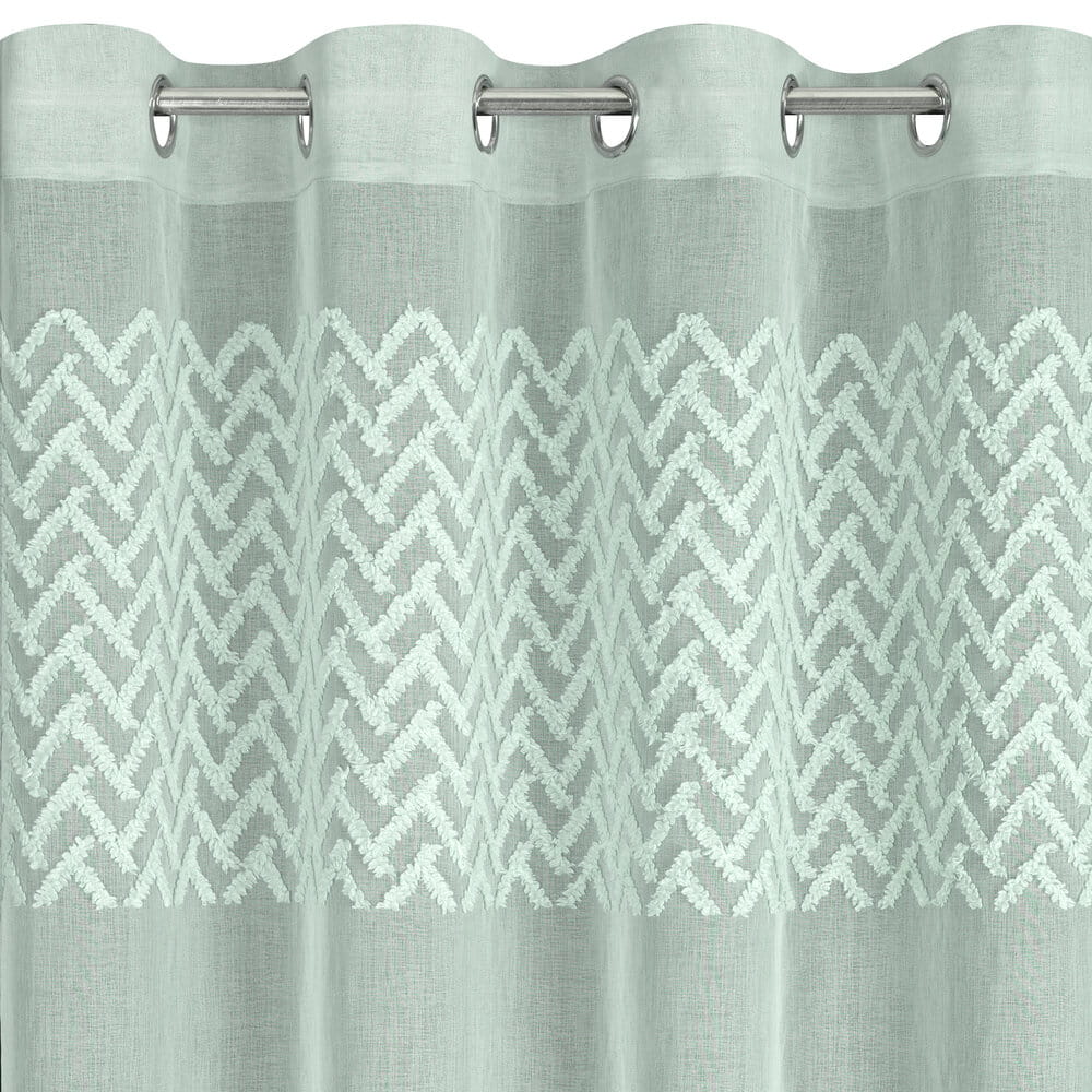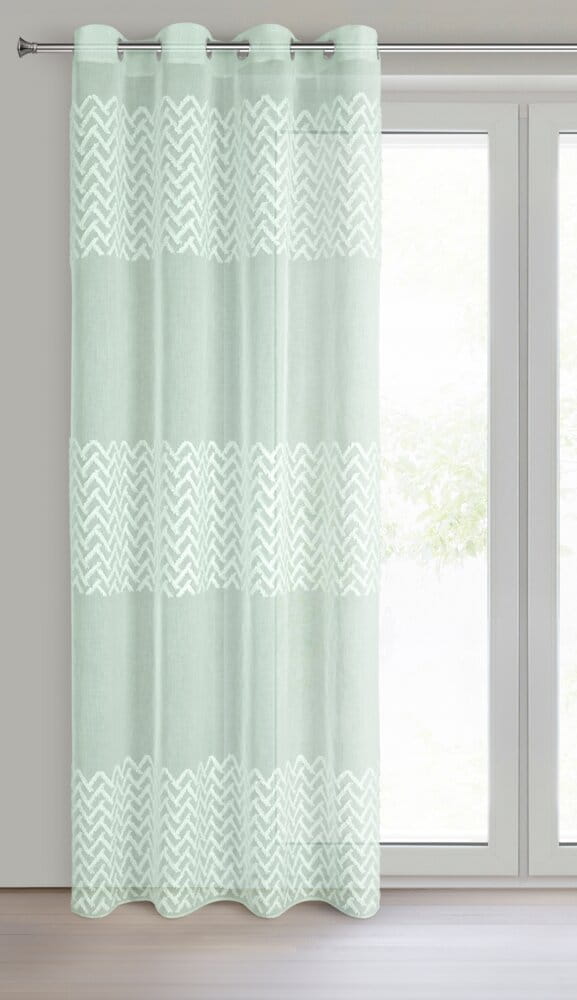 Zasłona gotowa zdobiona geometryczną aplikacją szerokość: 140 cm, długość: 250 cm, kolor: miętowy, Gramatura: 80 GSM, Skład: 100% poliester