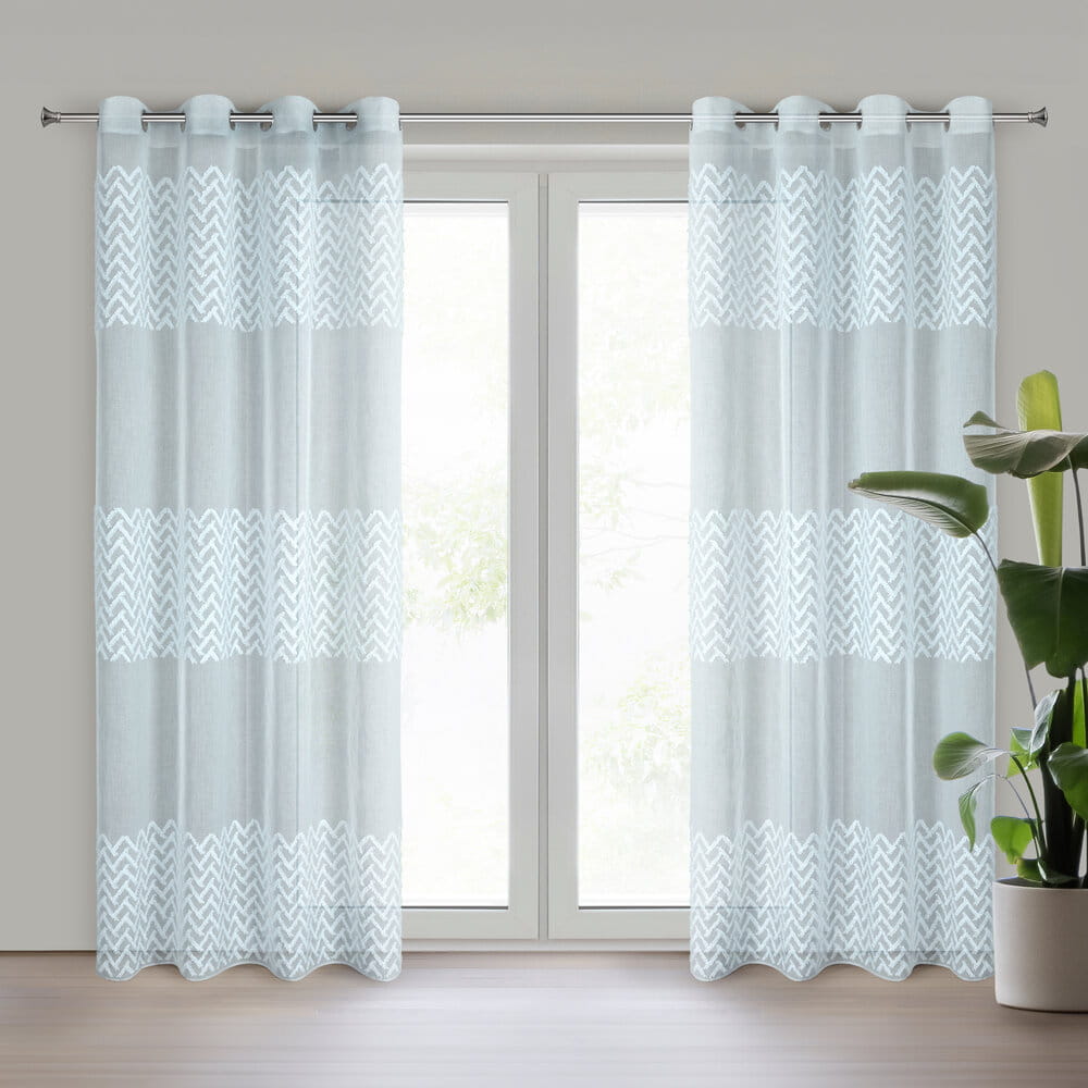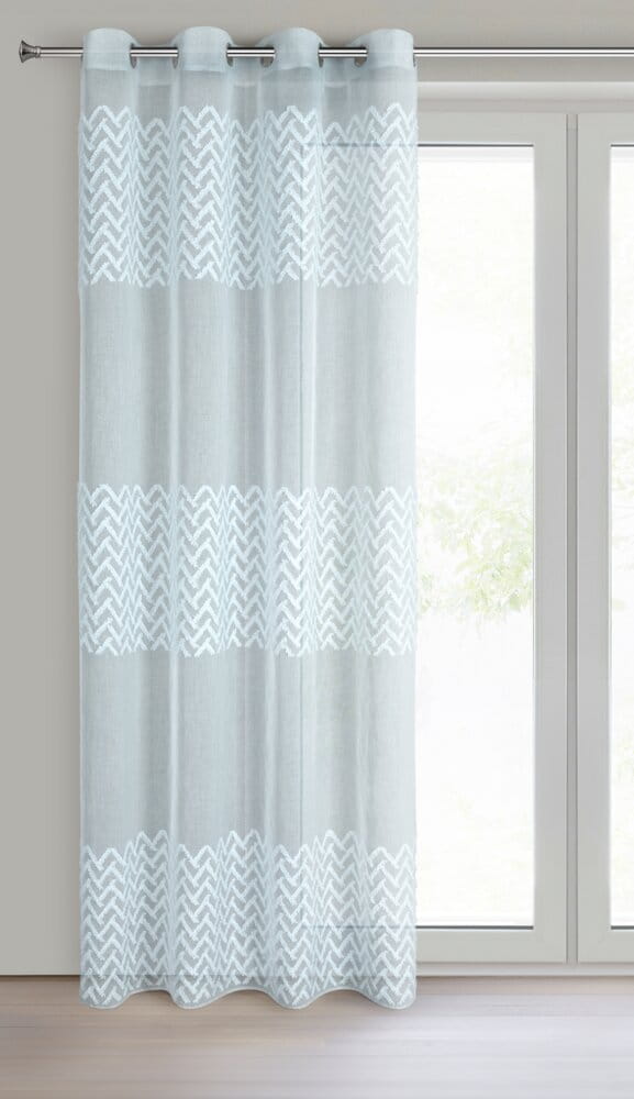Zasłona gotowa zdobiona geometryczną aplikacją szerokość: 140 cm, długość: 250 cm, kolor: niebieski, Gramatura: 80 GSM, Skład: 100% poliester