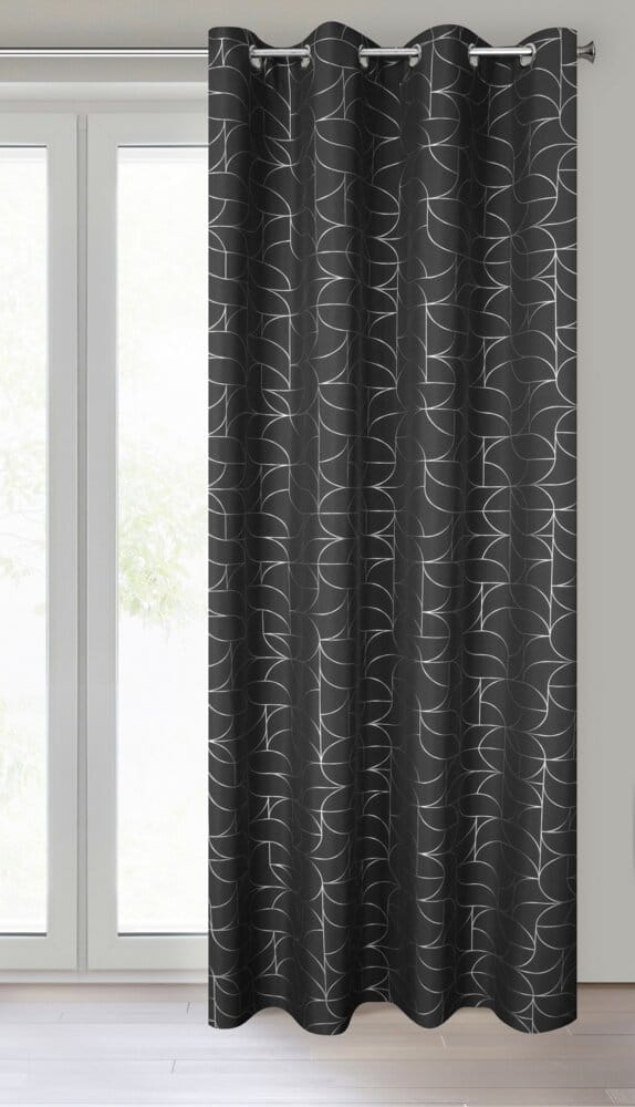 Zasłona gotowa z błyszczącym nadrukiem geometrycznym szerokość: 140 cm, długość: 250 cm, kolor: czarny, Gramatura: 140 GSM, Skład: 100% poliester