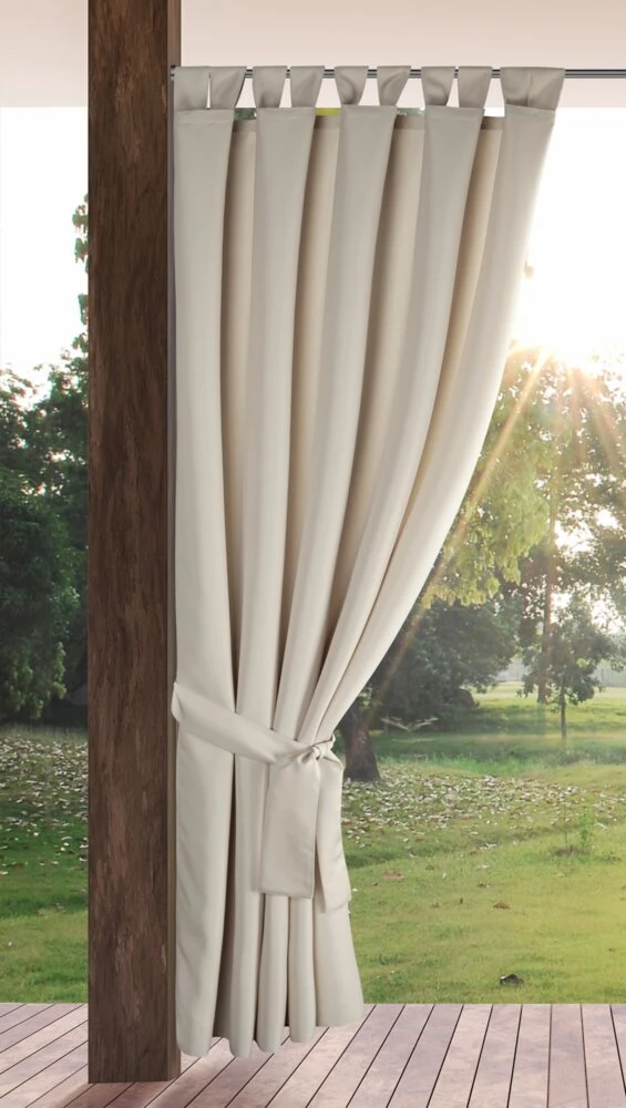 Gotowa zasłona ogrodowa, wodoodporna, z szelkami zapinanymi na rzepy szerokość: 155 cm, długość: 220 cm, kolor: beżowy, Gramatura: 180 GSM, Skład: 100% poliester