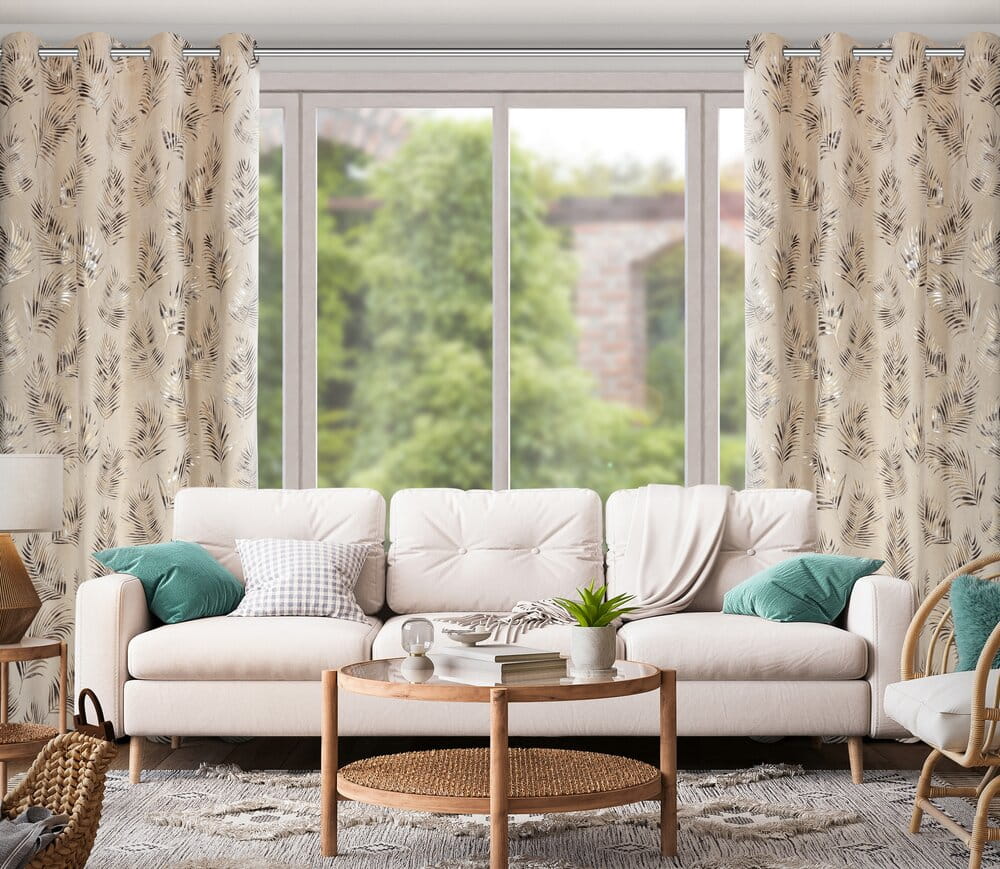 Zasłona welwetowa z cieniowanym błyszczącym nadrukiem szerokość: 140 cm, długość: 250 cm, kolor: beżowy, Gramatura: 200 GSM, Skład: 100% poliester