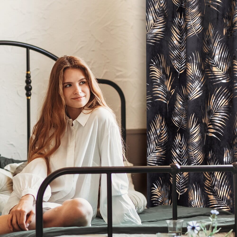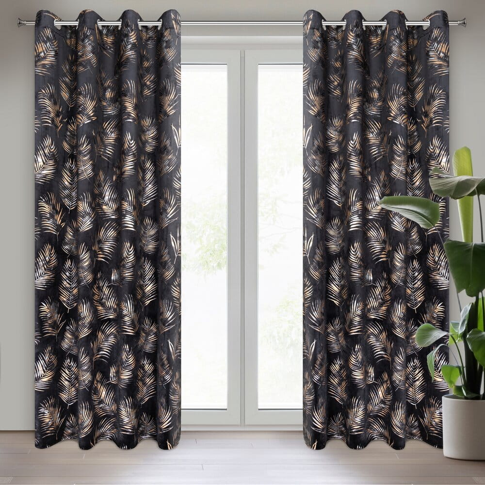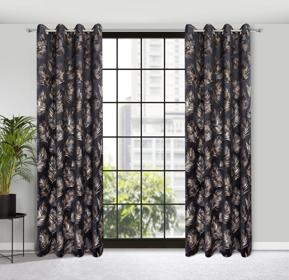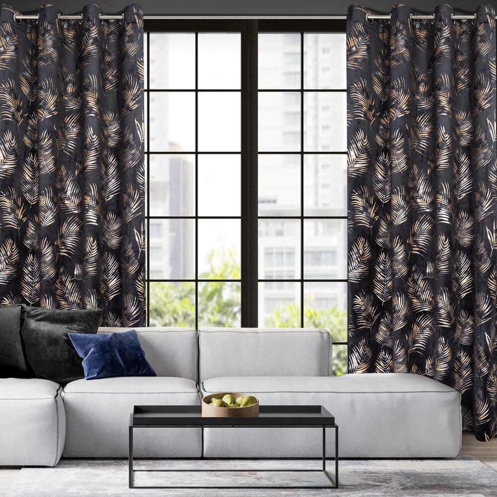 Zasłona welwetowa z cieniowanym błyszczącym nadrukiem szerokość: 140 cm, długość: 250 cm, kolor: czarny, Gramatura: 200 GSM, Skład: 100% poliester