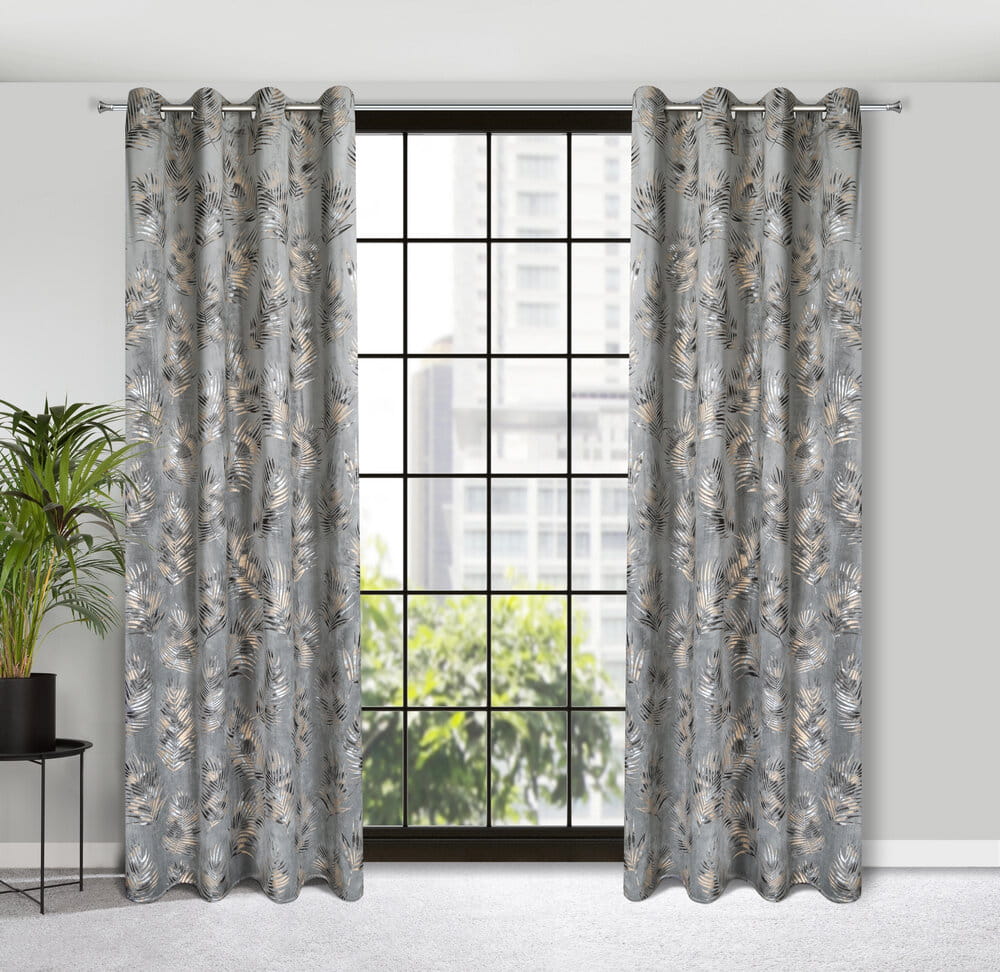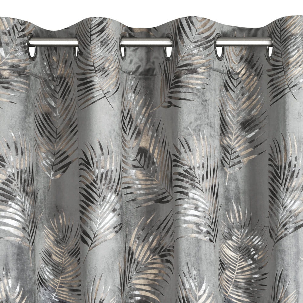Zasłona welwetowa z cieniowanym błyszczącym nadrukiem szerokość: 140 cm, długość: 250 cm, kolor: stalowy, Gramatura: 200 GSM, Skład: 100% poliester