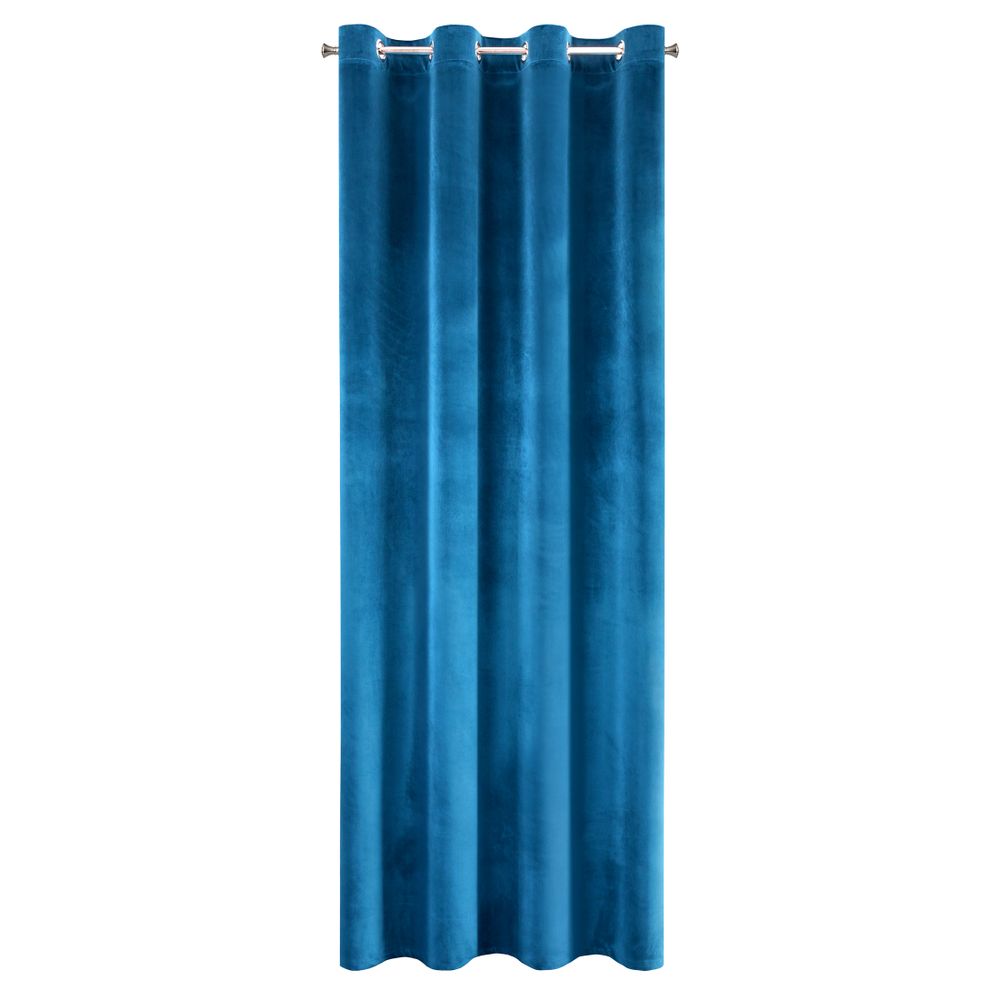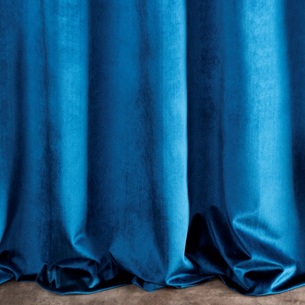 Lekka, welwetowa zasłona z miękkiej tkaniny o subtelnym połysku, charakterystycznym dla welwetów. Miękko się układa. Prasować na lewą stronę. szerokość: 140 cm, długość: 250 cm, kolor: granatowy, Gramatura: 190 GSM, Skład: 100% poliester
