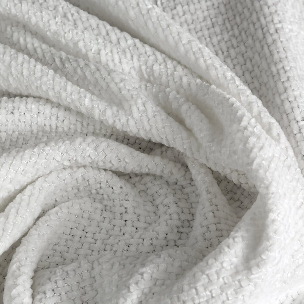 Zasłona gotowa z tkaniny szenilowej szerokość: 135 cm, długość: 250 cm, kolor: biały, Gramatura: 280 GSM, Skład: 100% poliester