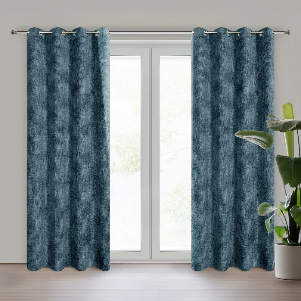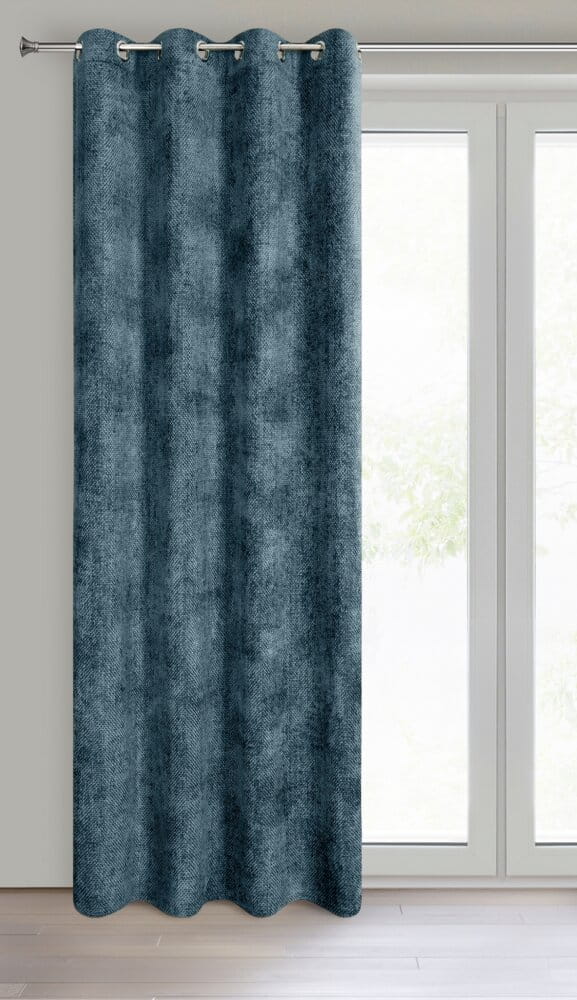 Zasłona gotowa z tkaniny szenilowej szerokość: 135 cm, długość: 250 cm, kolor: granatowy, Gramatura: 280 GSM, Skład: 100% poliester