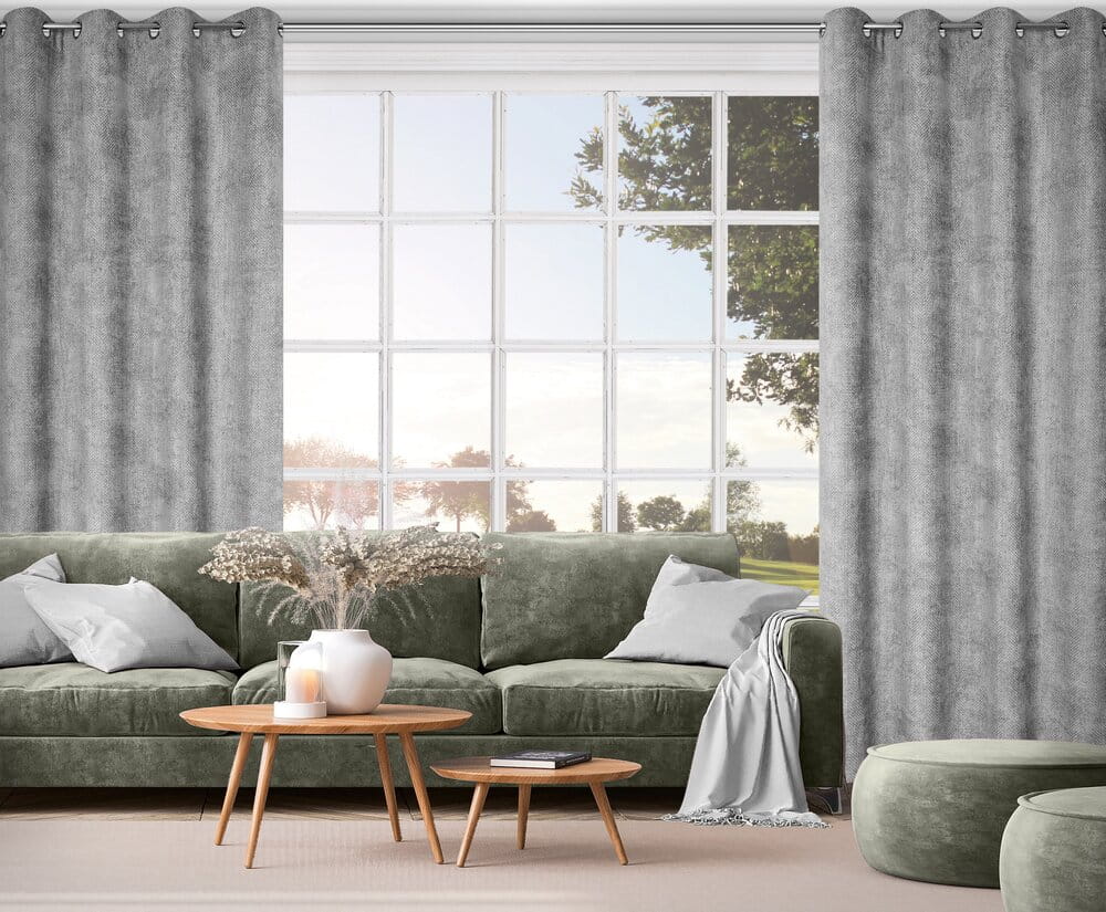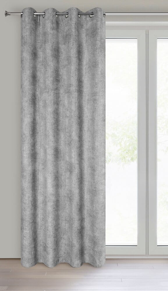 Zasłona gotowa z tkaniny szenilowej szerokość: 135 cm, długość: 250 cm, kolor: popielaty, Gramatura: 280 GSM, Skład: 100% poliester