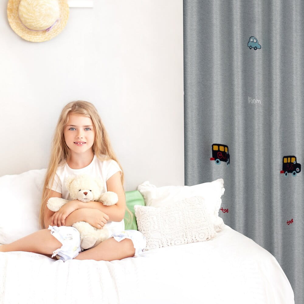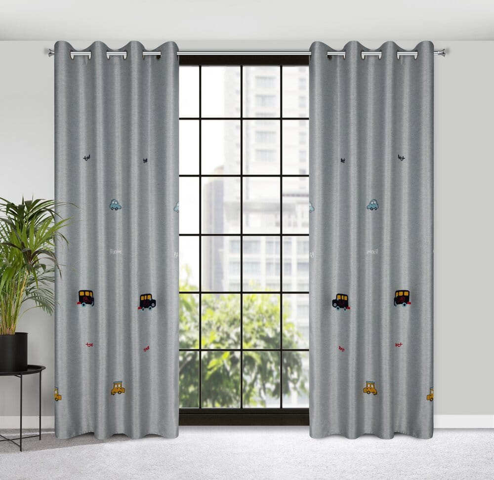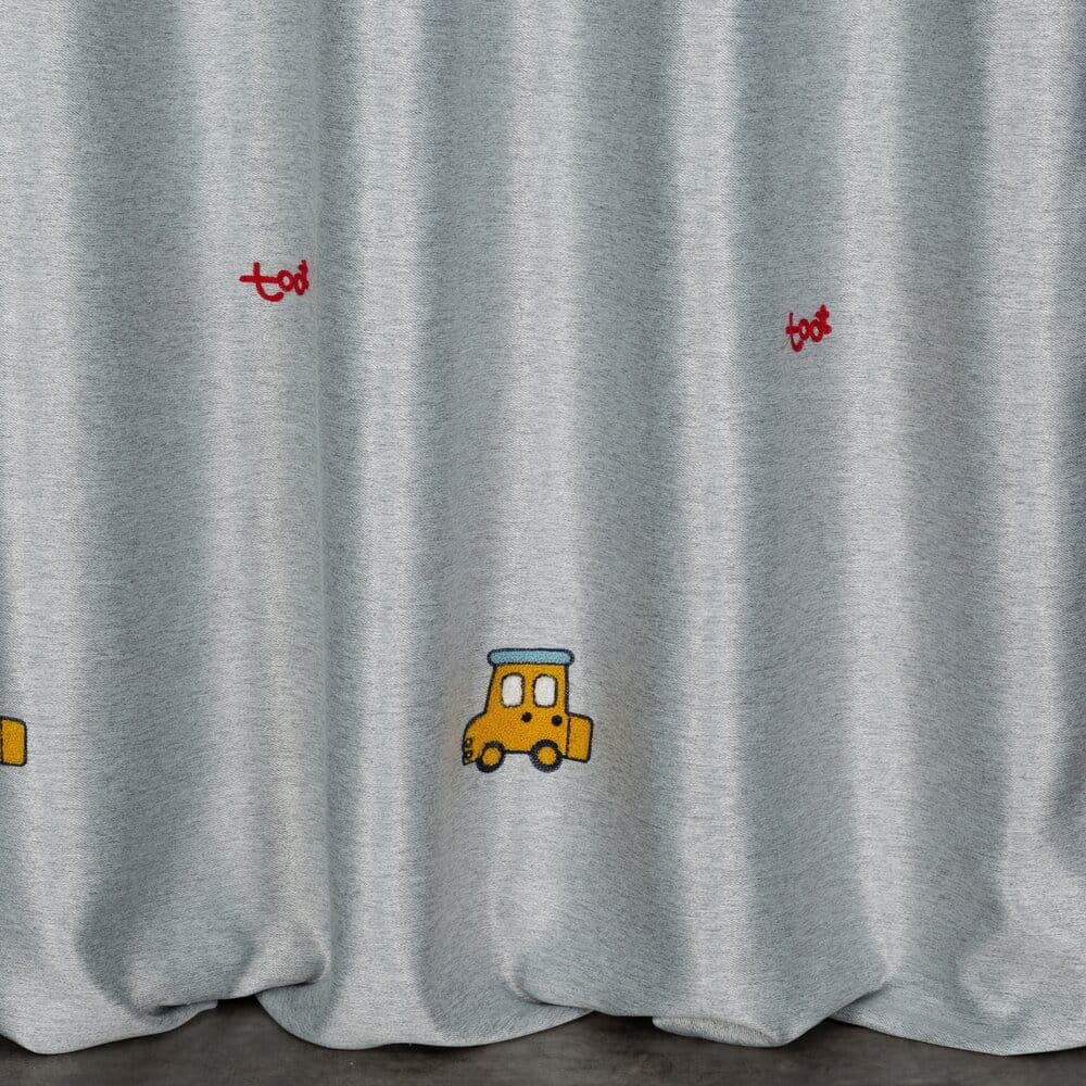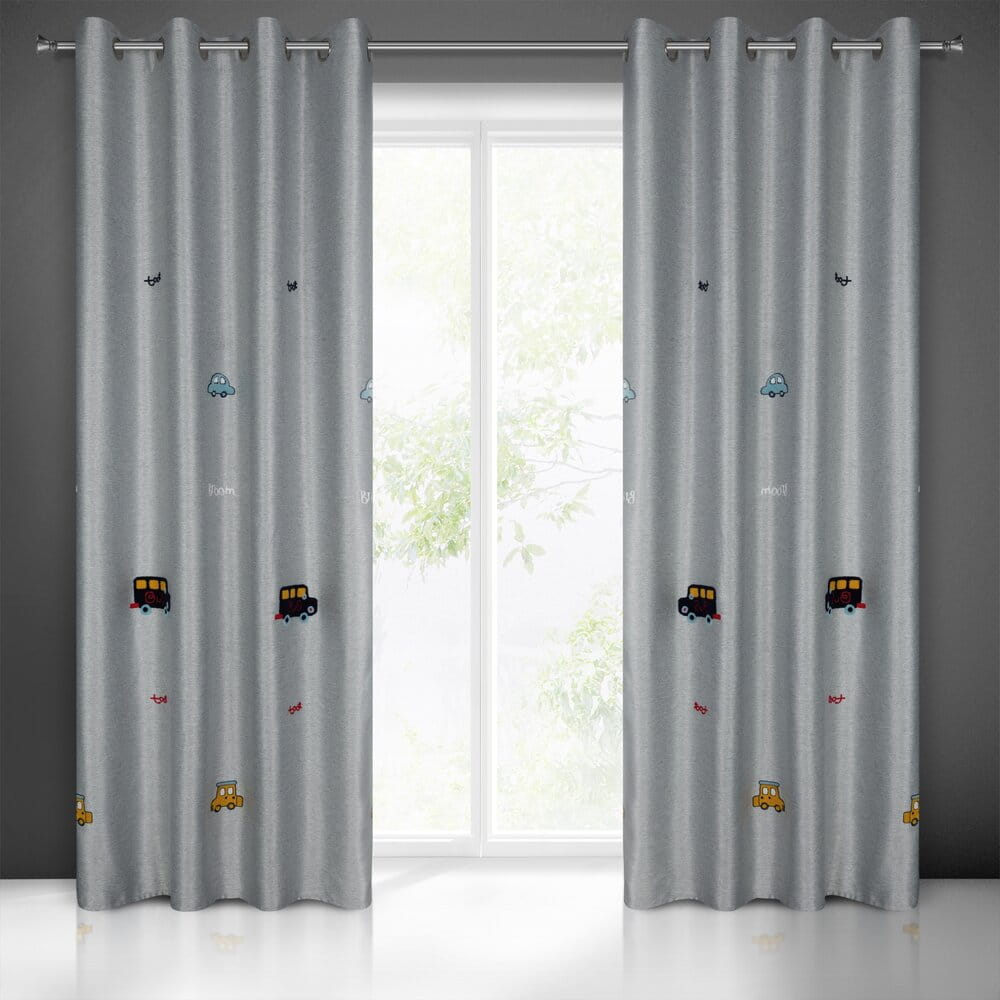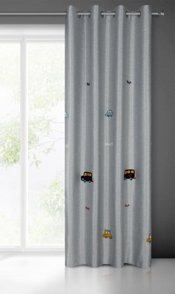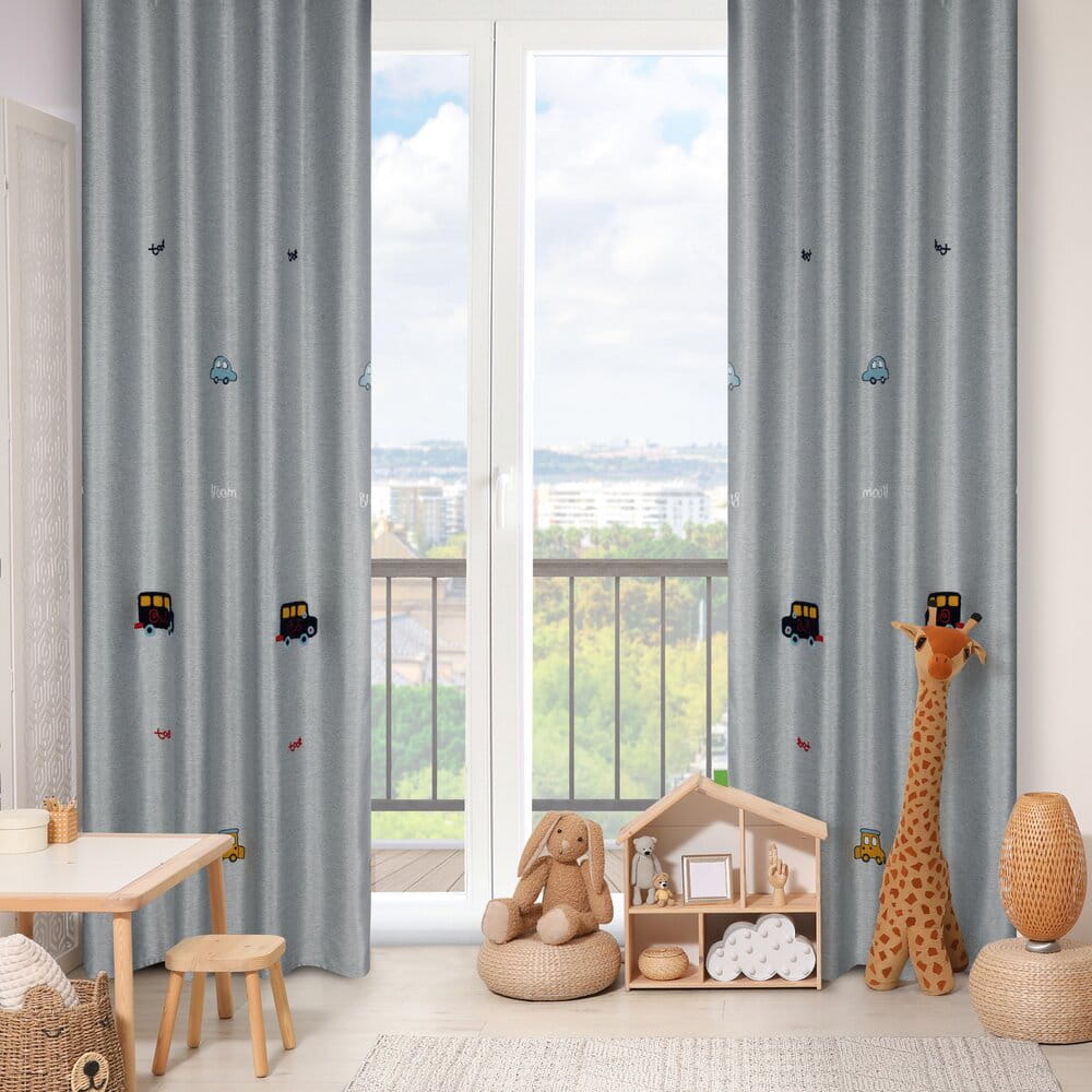 Zasłona gotowa zdobiona haftem w dziecięcy wzór szerokość: 140 cm, długość: 250 cm, kolor: srebrny, Skład: 100% poliester