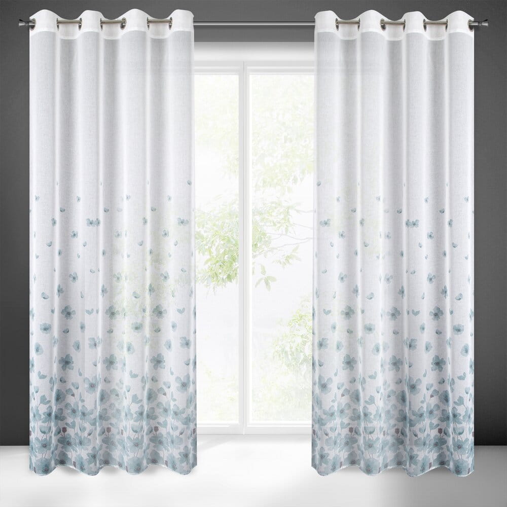 Zasłona gotowa z kwiatowym nadrukiem szerokość: 140 cm, długość: 250 cm, kolor: biały, Skład: 100% poliester