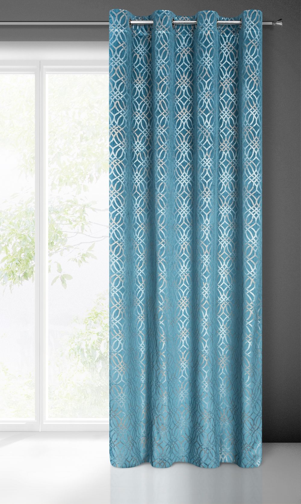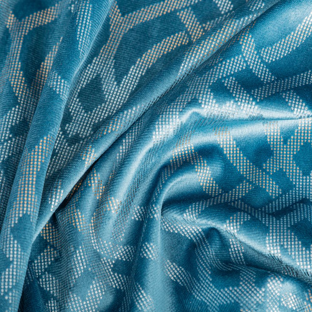 Zasłona welwetowa z szampańskim i srebrnym nadrukiem szerokość: 140 cm, długość: 250 cm, kolor: niebieski, Gramatura: 200 GSM, Skład: 100% poliester