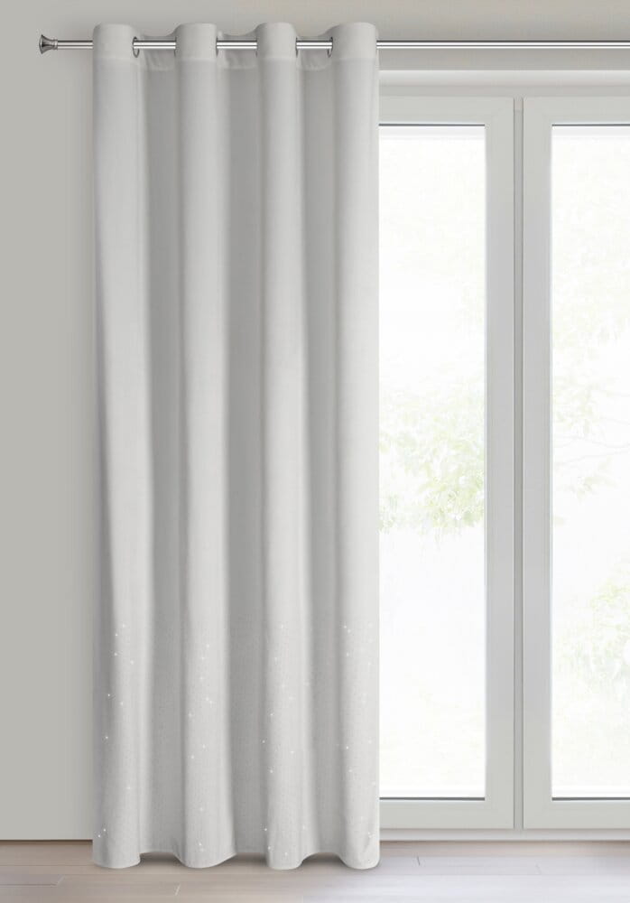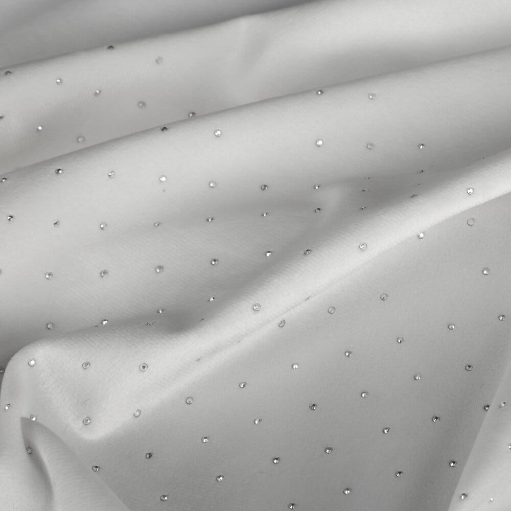 Zasłona gotowa welwetowa zdobiona diamencikami szerokość: 140 cm, długość: 250 cm, kolor: biały, Gramatura: 200 GSM, Skład: 100% poliester