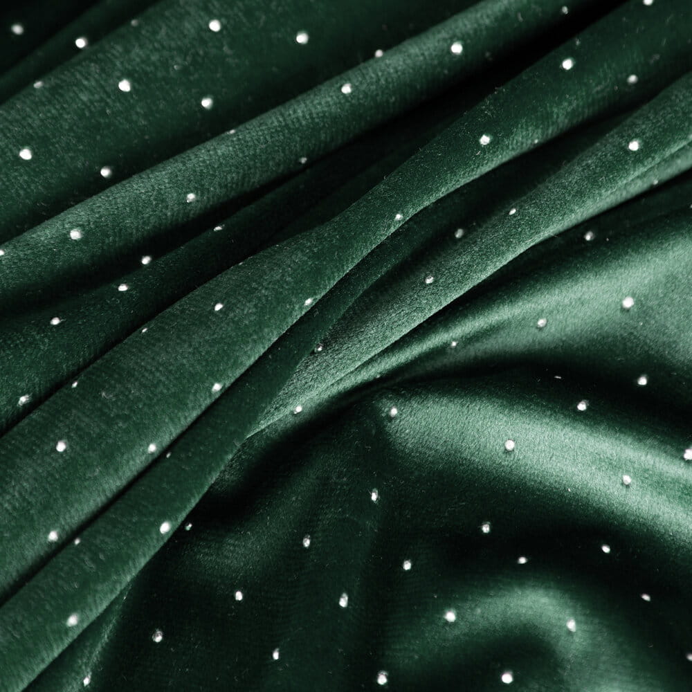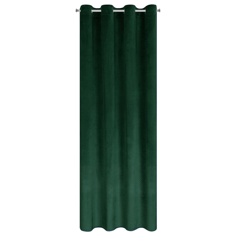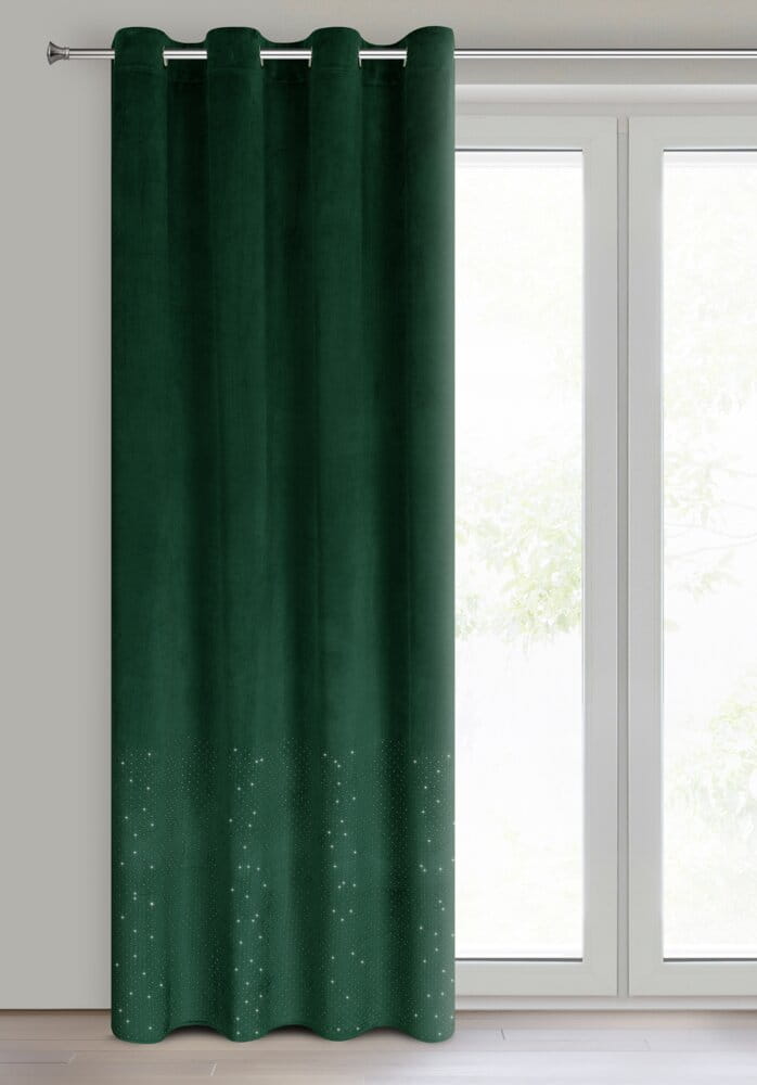 Zasłona gotowa welwetowa zdobiona diamencikami szerokość: 140 cm, długość: 250 cm, kolor: ciemnozielony, Gramatura: 200 GSM, Skład: 100% poliester