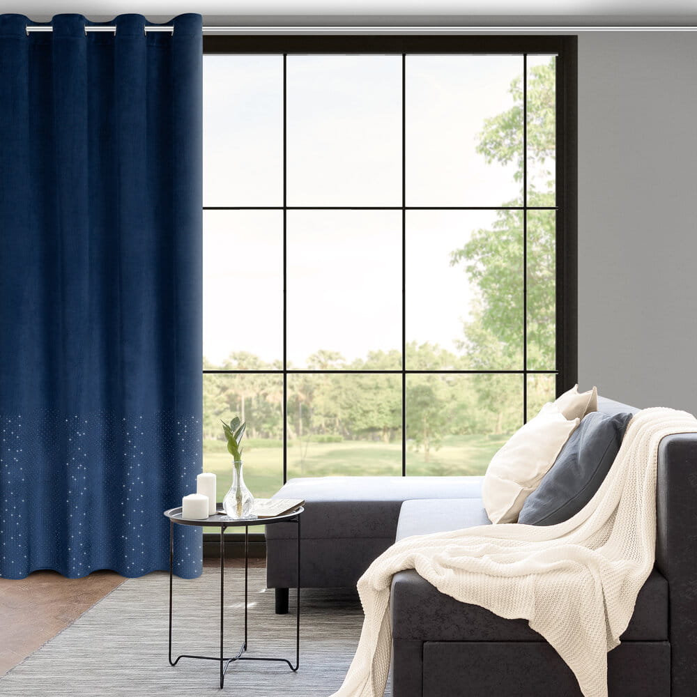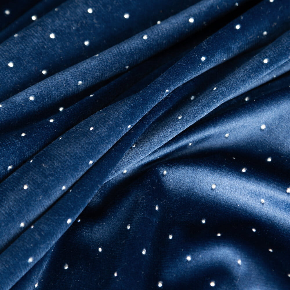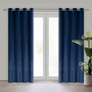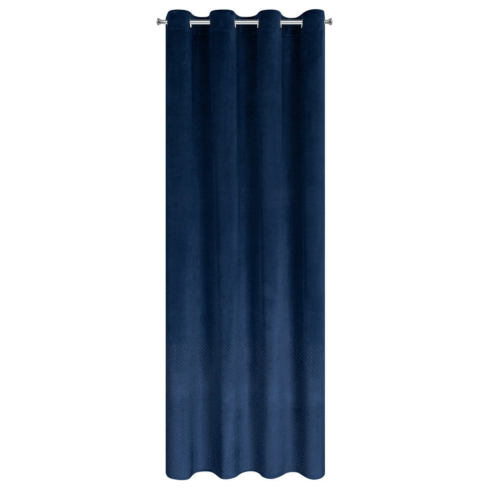 Zasłona gotowa welwetowa zdobiona diamencikami szerokość: 140 cm, długość: 250 cm, kolor: granatowy, Gramatura: 200 GSM, Skład: 100% poliester