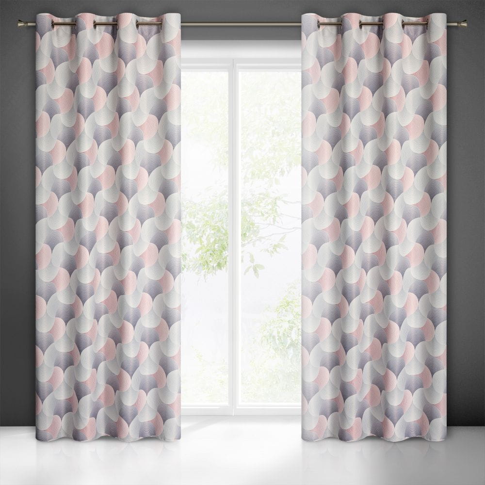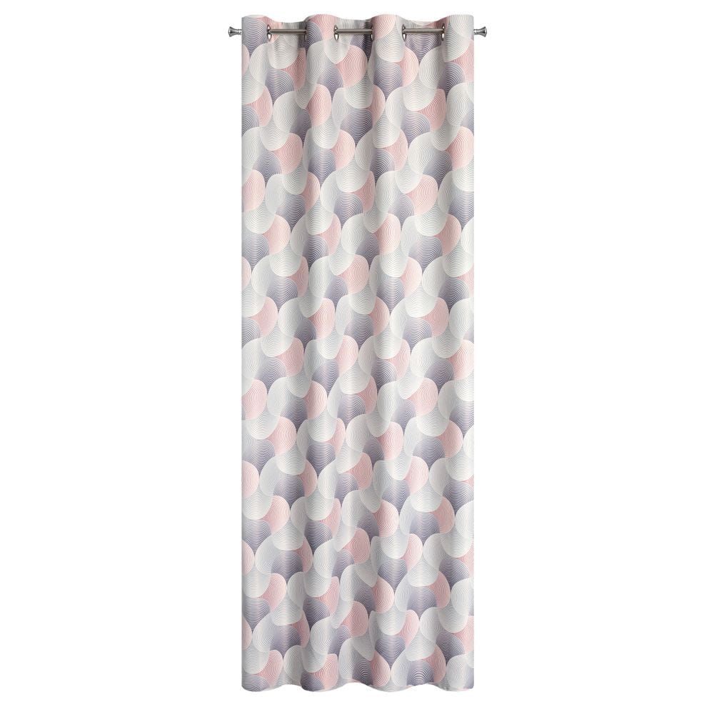 Zasłona zaciemniająca z geometrycznym nadrukiem szerokość: 140 cm, długość: 250 cm, kolor: szary/różowy, Gramatura: 210 GSM, Skład: 100% poliester