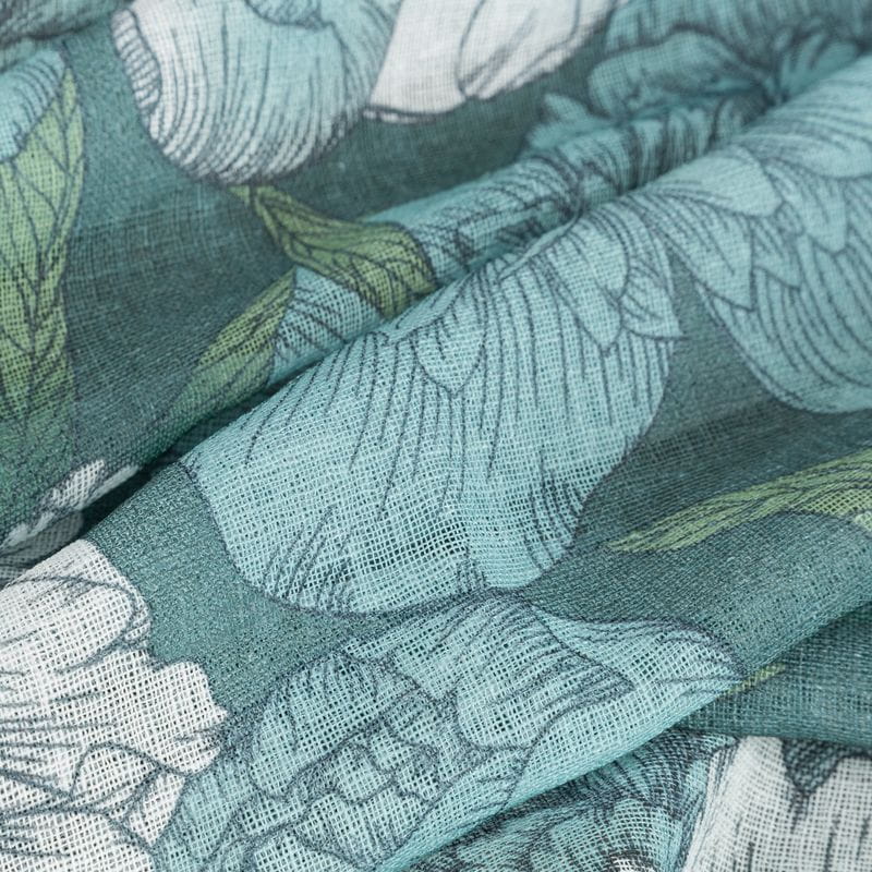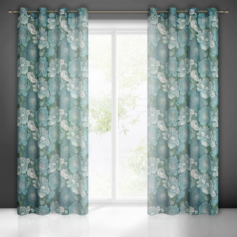 Klasyczna zasłona z tkaniny o strukturze płótna zdobiona pastelowym nadrukiem kwiatów ogrodowych. Średni stopień zaciemnienia. Tkanina łatwa w prasowaniu. szerokość: 140 cm, długość: 250 cm, kolor: niebieski/szary, Gramatura: 130 GSM, Skład: 100% poliester