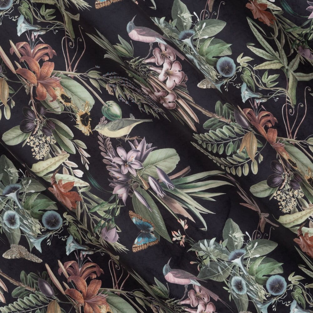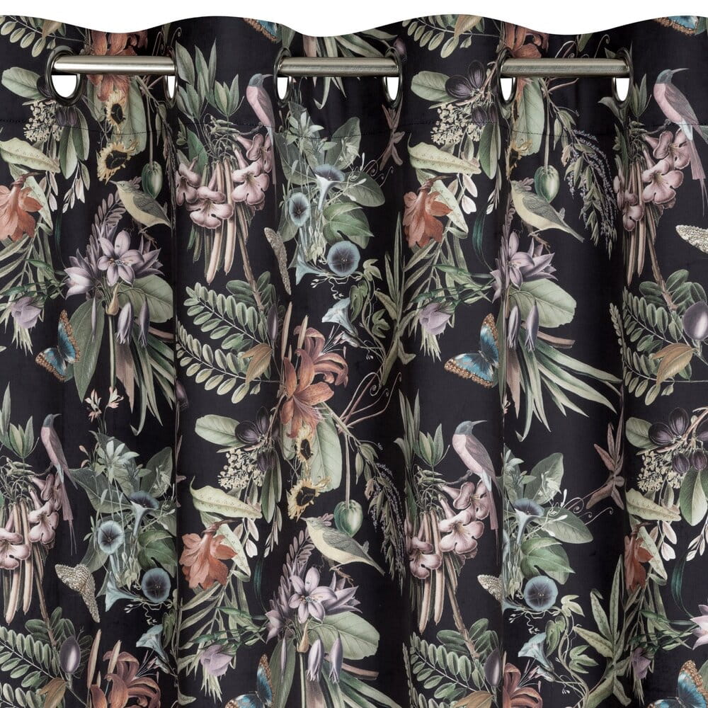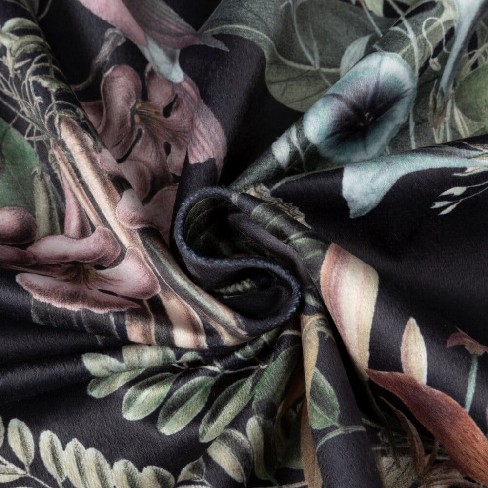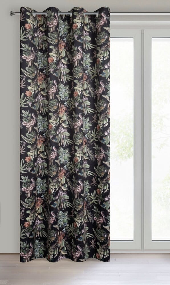 Zasłona welwetowa z nadrukiem kwiatowym szerokość: 140 cm, długość: 250 cm, kolor: czarny, Gramatura: 200 GSM, Skład: 100%poliester