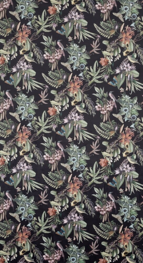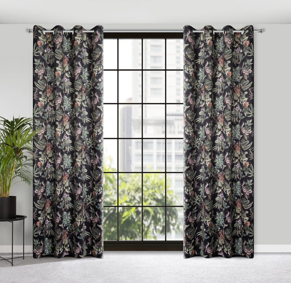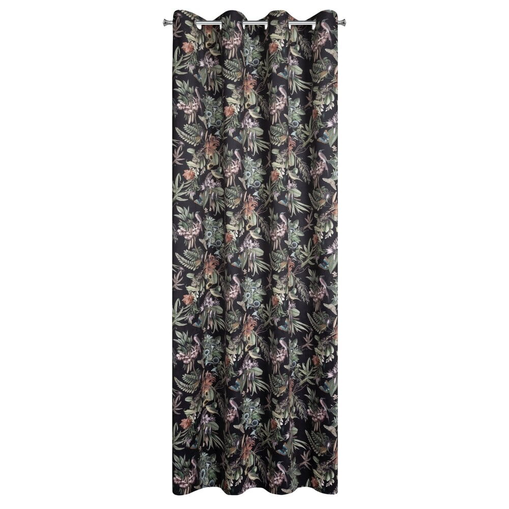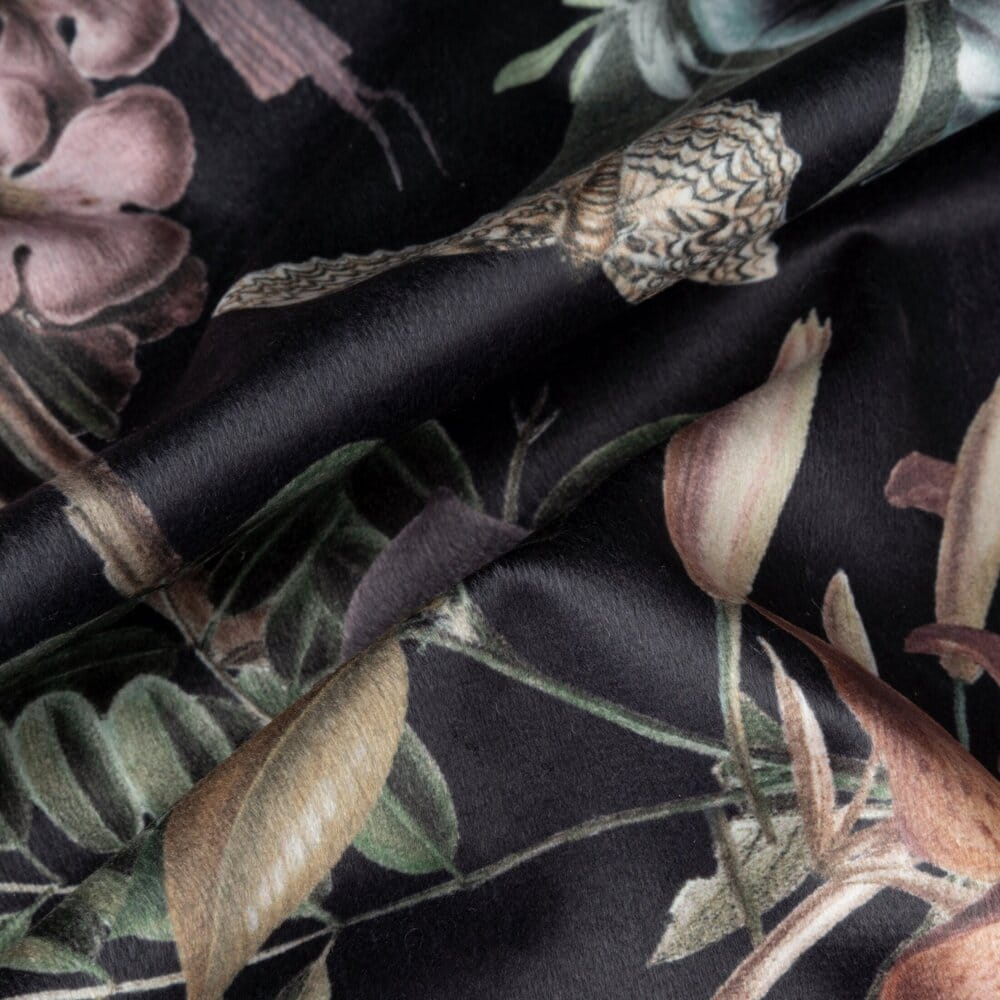 Zasłona welwetowa z nadrukiem kwiatowym szerokość: 140 cm, długość: 250 cm, kolor: czarny, Gramatura: 200 GSM, Skład: 100%poliester