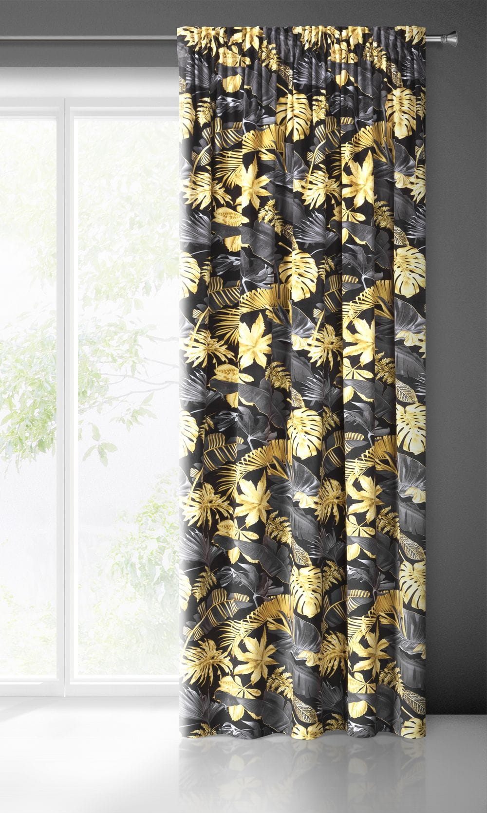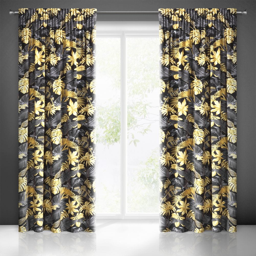 Zasłona welwetowa z nadrukiem szerokość: 140 cm, długość: 270 cm, kolor: żółty, Gramatura: 200 GSM, Skład: 100%poliester